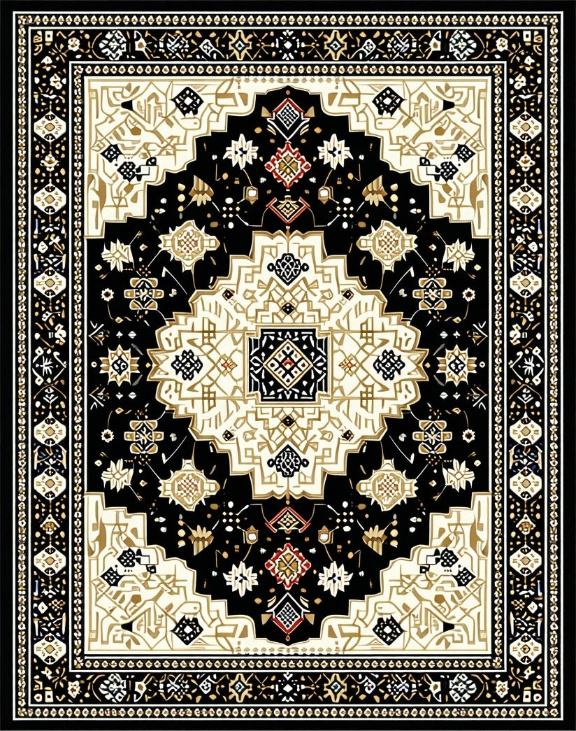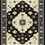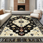 Flatwoven High Traffic Area Rug, Luxurious Vintage Damask Motif, Non Slip, Stain Resistant, Washable Area Rugs for Living Room, Bedroom (Black) Overview:
