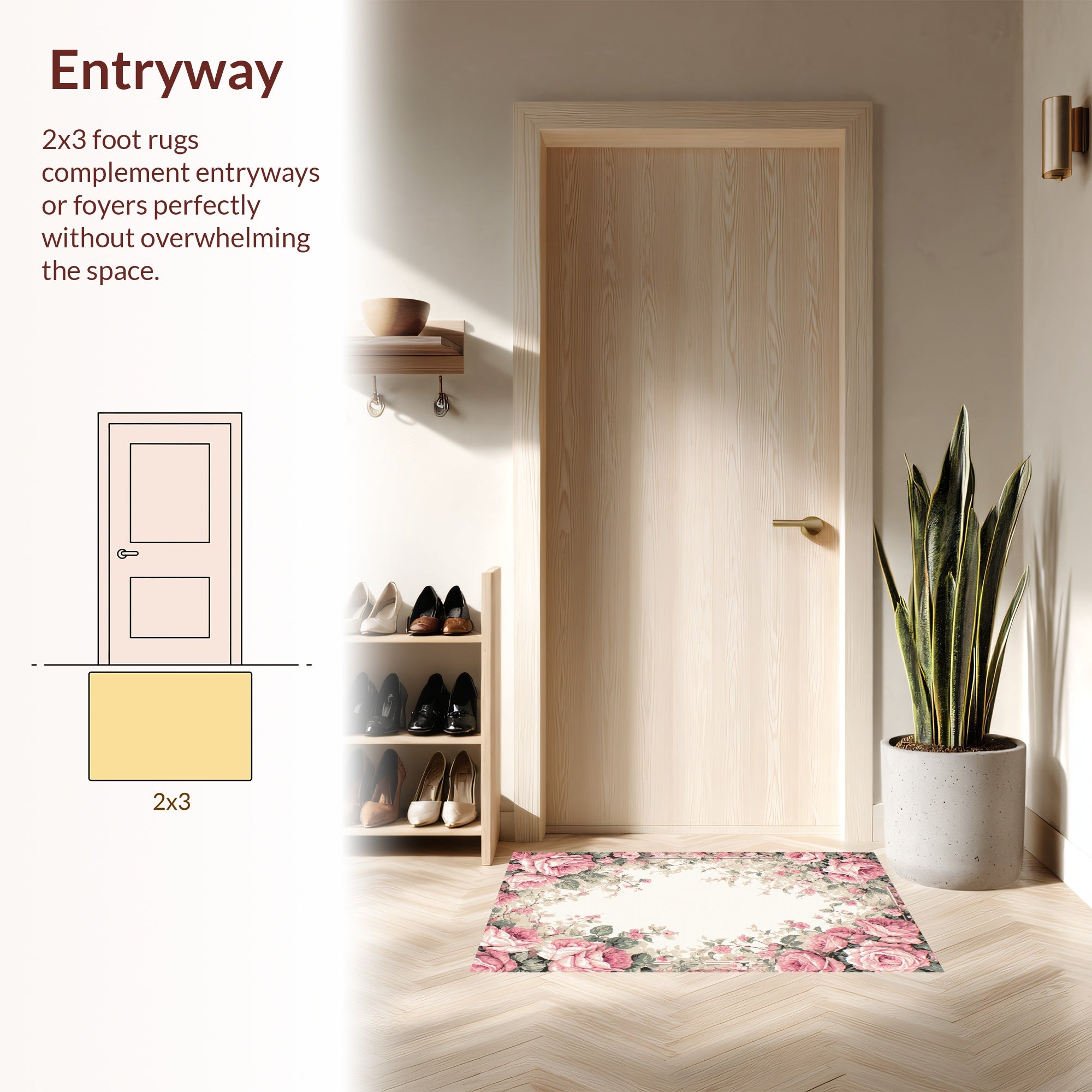 Flatwoven High Traffic Area Rug, Luxurious Vintage Inspired Circular Motif, Non Slip, Stain Resistant, Washable Area Rugs for Living Room, Bedroom (Pink) Overview: