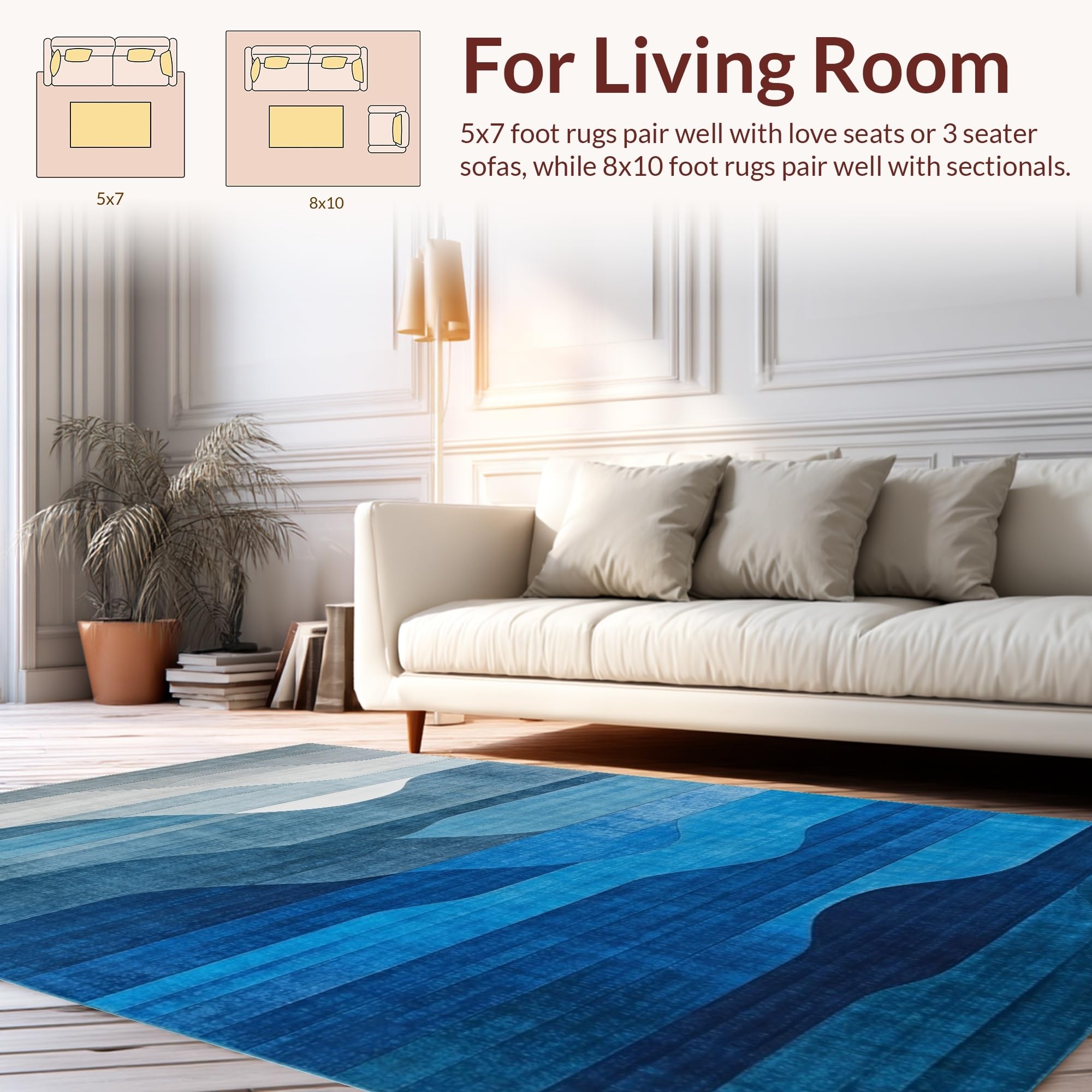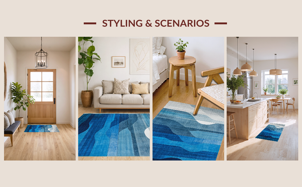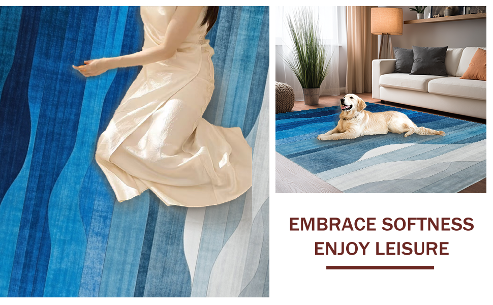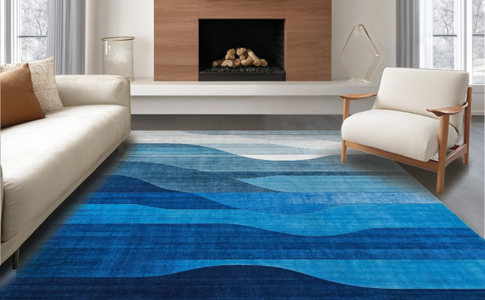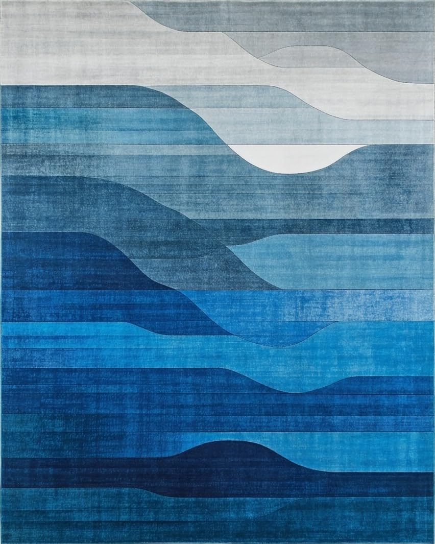 Ultra Soft Area Rug, Non Slip, Stain Resistant, Washable Area Rugs for Living Room, Bedroom, Luxurious Watercolor Blue Aesthetic(Blue) Overview: