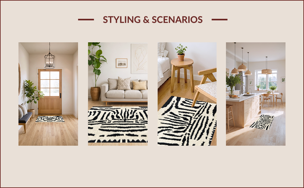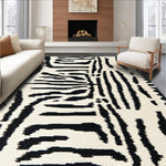 Ultra Soft Area Rug, Non Slip, Stain Resistant, Washable Area Rugs for Living Room, Bedroom, Luxury Shag Bedroom Rug Zebra Pattern Plush Easy Care(Black) Overview: