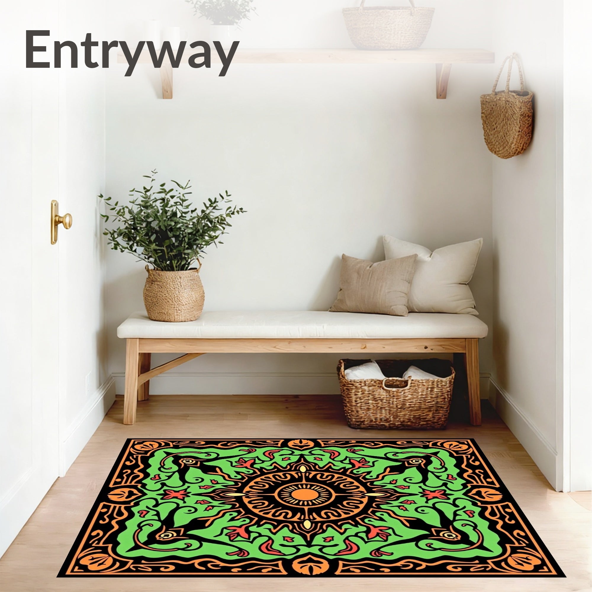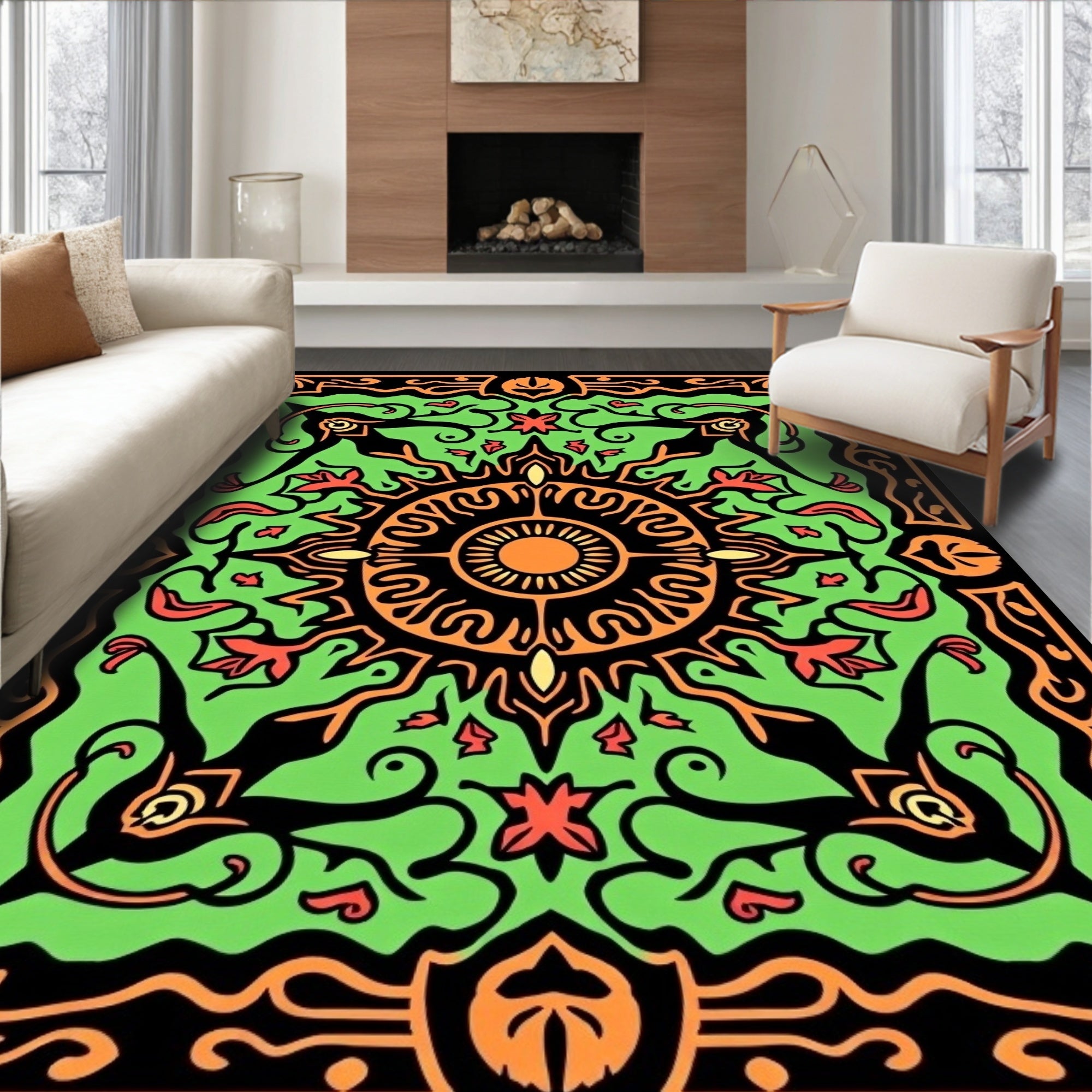 Ultra Soft Area Rug, Non Slip, Stain Resistant, Washable Area Rugs for Living Room, Bedroom, Macabre Fantasy Pumpkin Queen Dancing Swirl(Green) Overview: