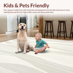 - Soft and Fluffy Comfort: This low pile rug is made from a faux cashmere texture, offering a smooth, soft touch that elevates any room. Ideal for areas where comfort matters without compromising on easy maintenance.