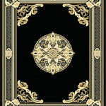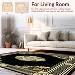 Machine Washable Area Rug Black Gold Medallion Rug(Black)