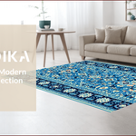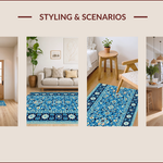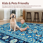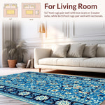 Ultra Soft Area Rug, Non Slip, Stain Resistant, Washable Area Rugs for Living Room, Bedroom, Machine Washable Retro Bedroom Rug with Rubber Backing(Blue) Overview: