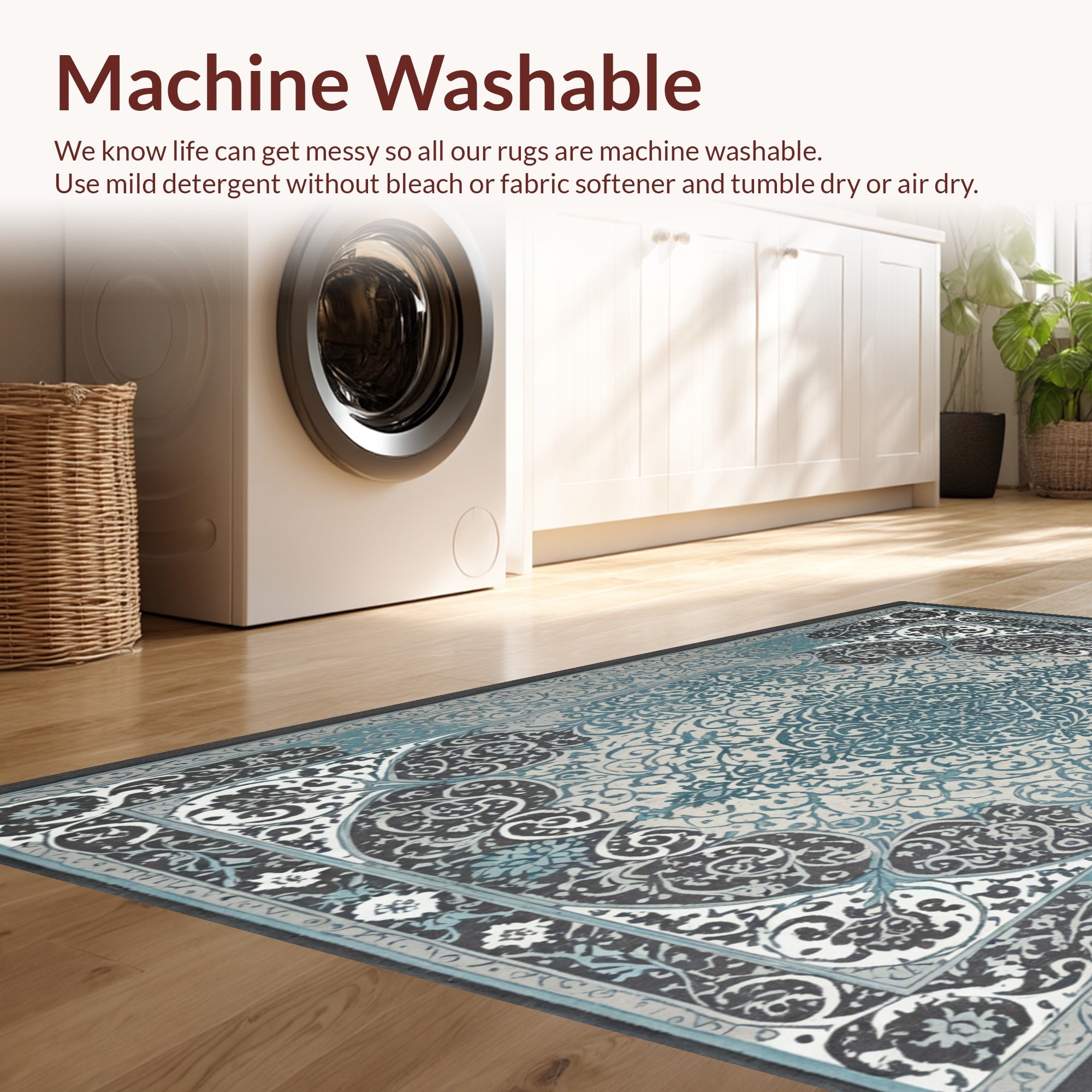 - Machine Washable: Our rugs can be easily thrown in the wash machine.