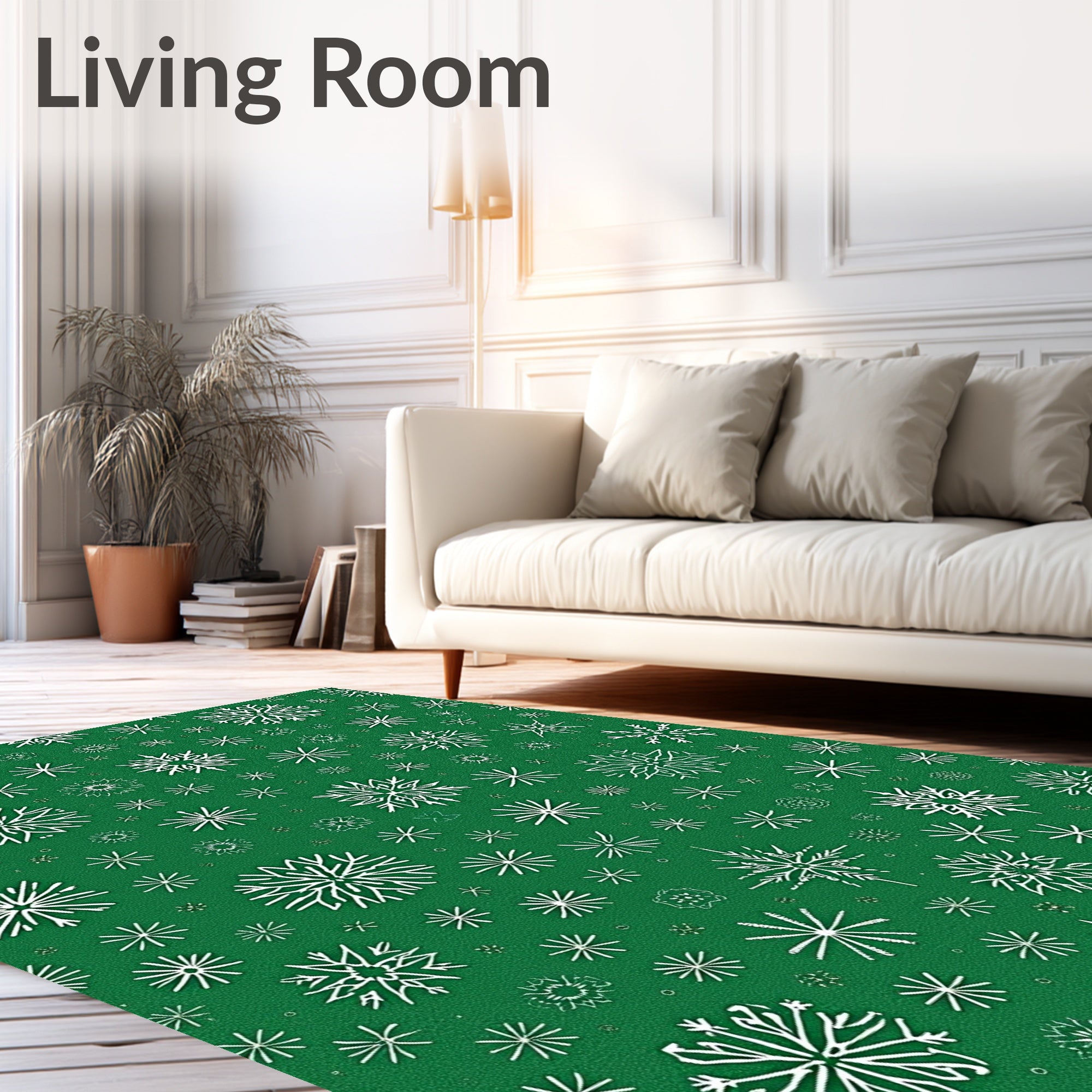 Ultra Soft Area Rug, Non Slip, Stain Resistant, Washable Area Rugs for Living Room, Bedroom, Magical Flake Constellation Wintry Celebration Furnishing(Green) Overview: