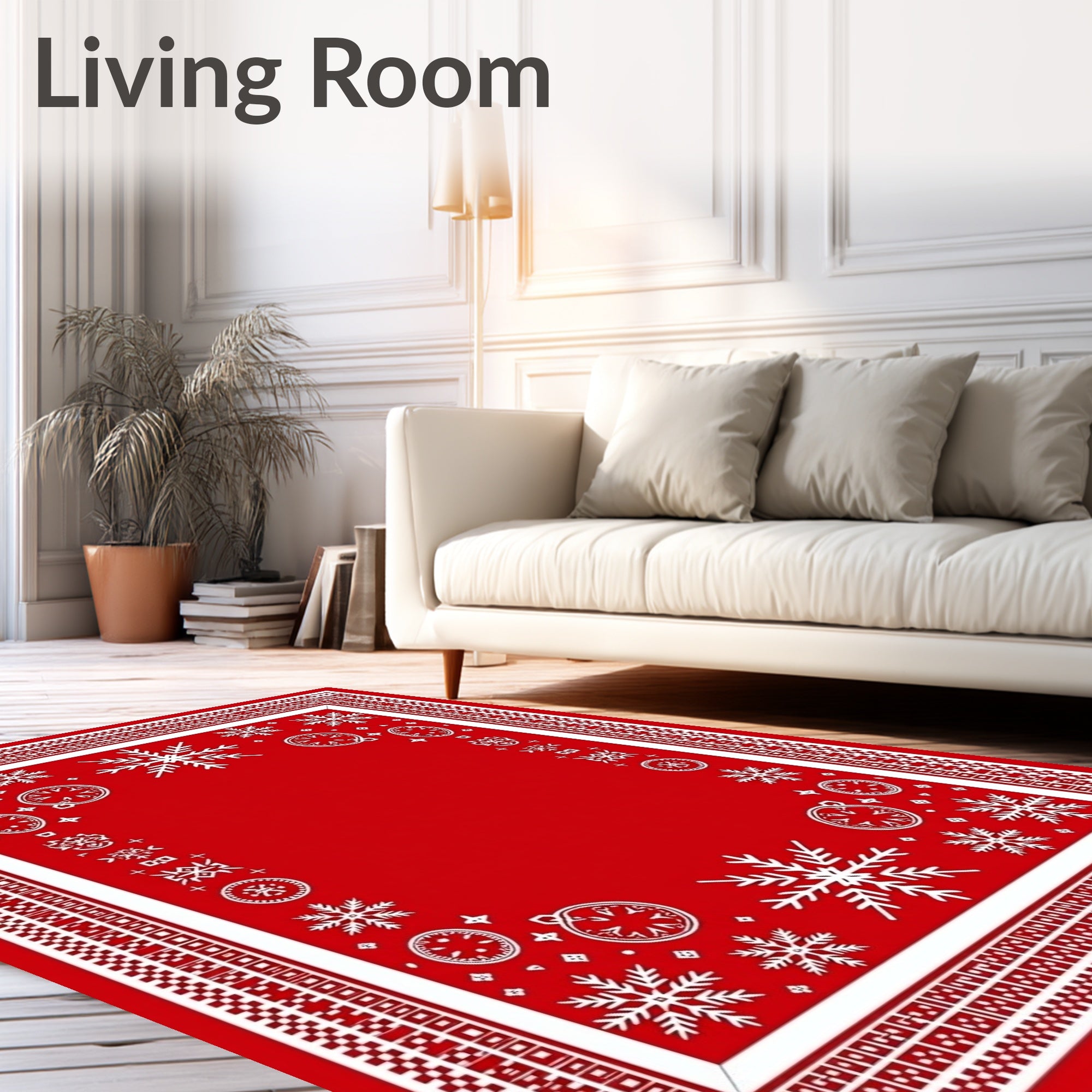 Ultra Soft Area Rug, Non Slip, Stain Resistant, Washable Area Rugs for Living Room, Bedroom, Magical Frosty Celebration(Red) Overview:
