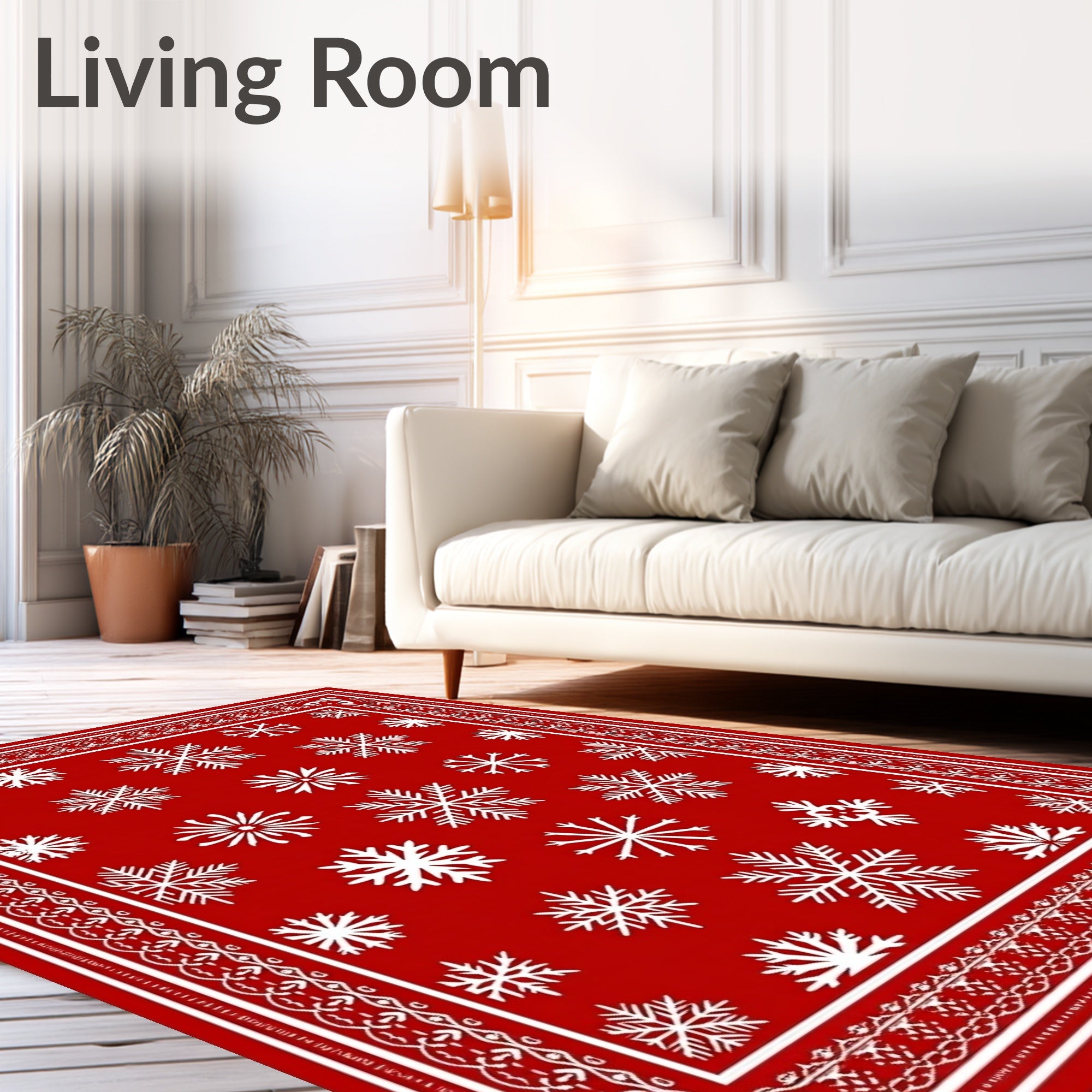Ultra Soft Area Rug, Non Slip, Stain Resistant, Washable Area Rugs for Living Room, Bedroom, Magical Frosty Symphony Handsome Decorative Statement(Red) Overview: