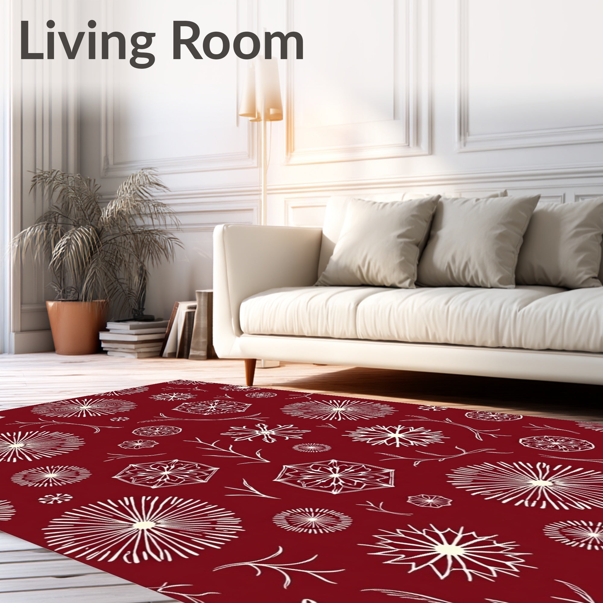 Ultra Soft Area Rug, Non Slip, Stain Resistant, Washable Area Rugs for Living Room, Bedroom, Magical Frosty Wonderland Celebration Accent(Red) Overview: