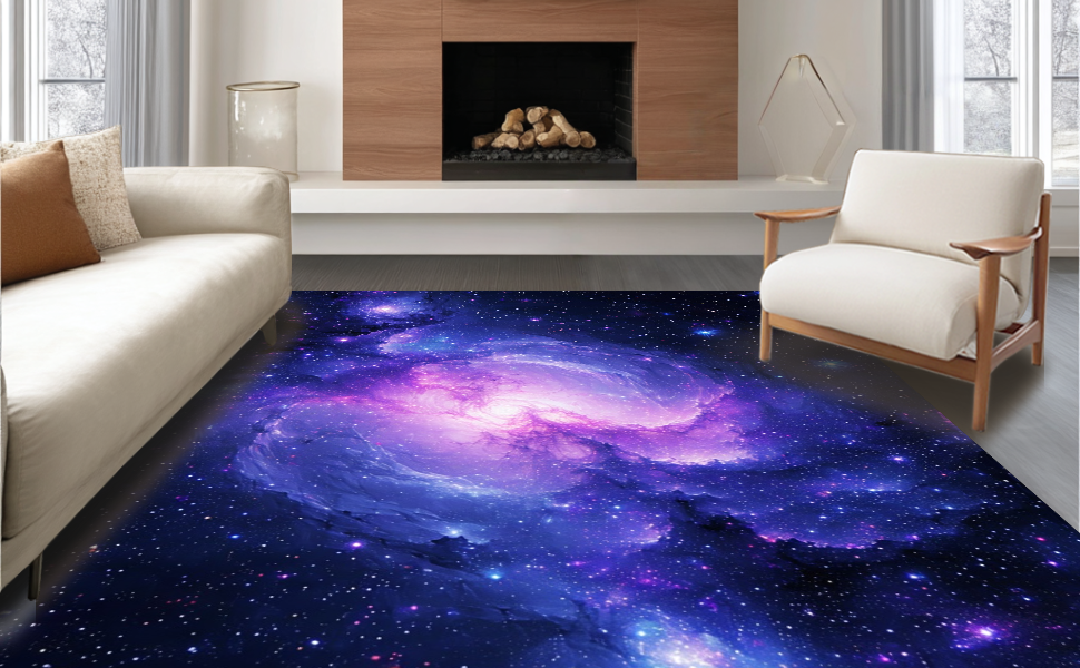 Ultra Soft Area Rug, Non Slip, Stain Resistant, Washable Area Rugs for Living Room, Bedroom, Magical Galaxy Spectrum Display(Purple) Overview: