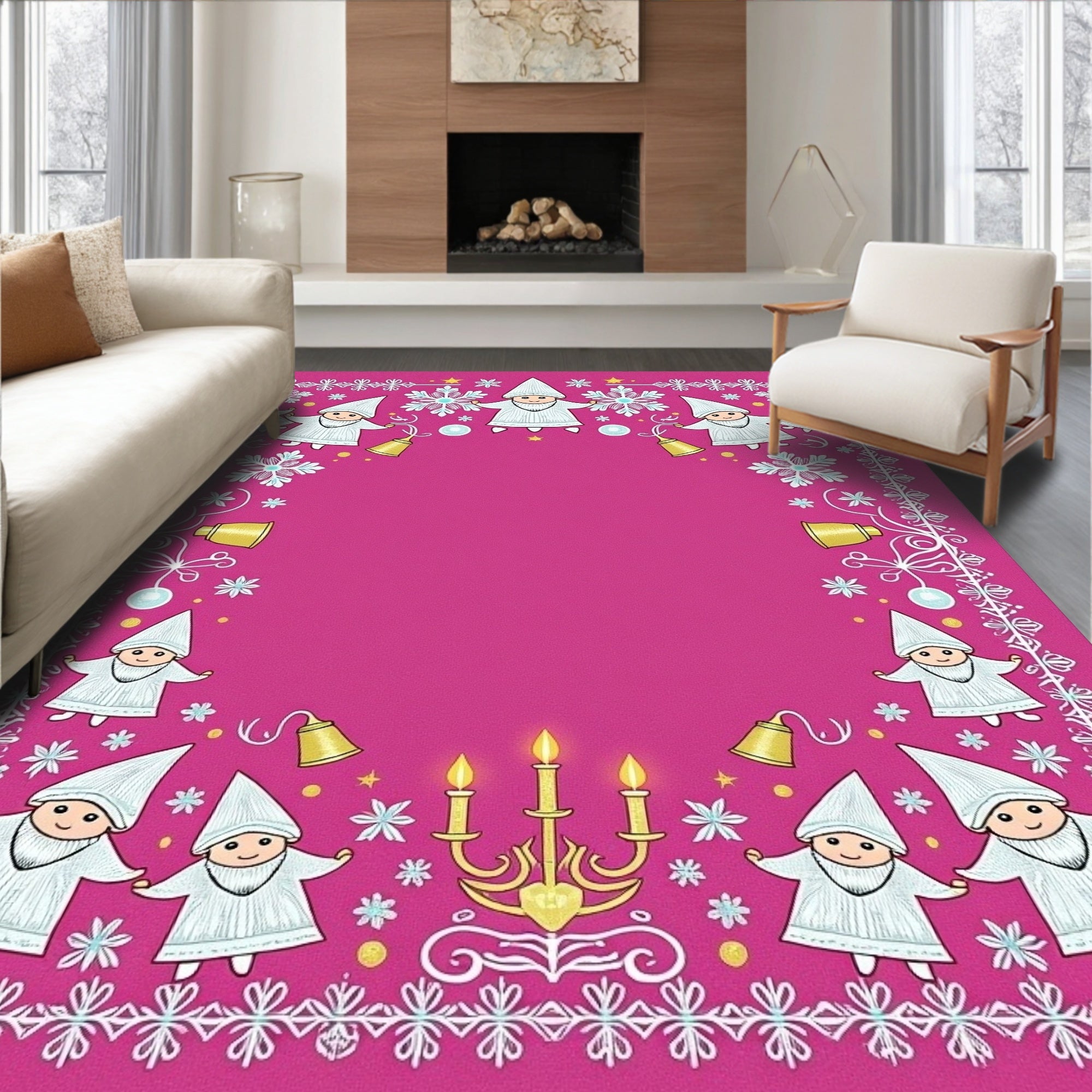 Ultra Soft Area Rug, Non Slip, Stain Resistant, Washable Area Rugs for Living Room, Bedroom, Magical Gnome Candlelight Entryway with Bells(Pink) Overview: