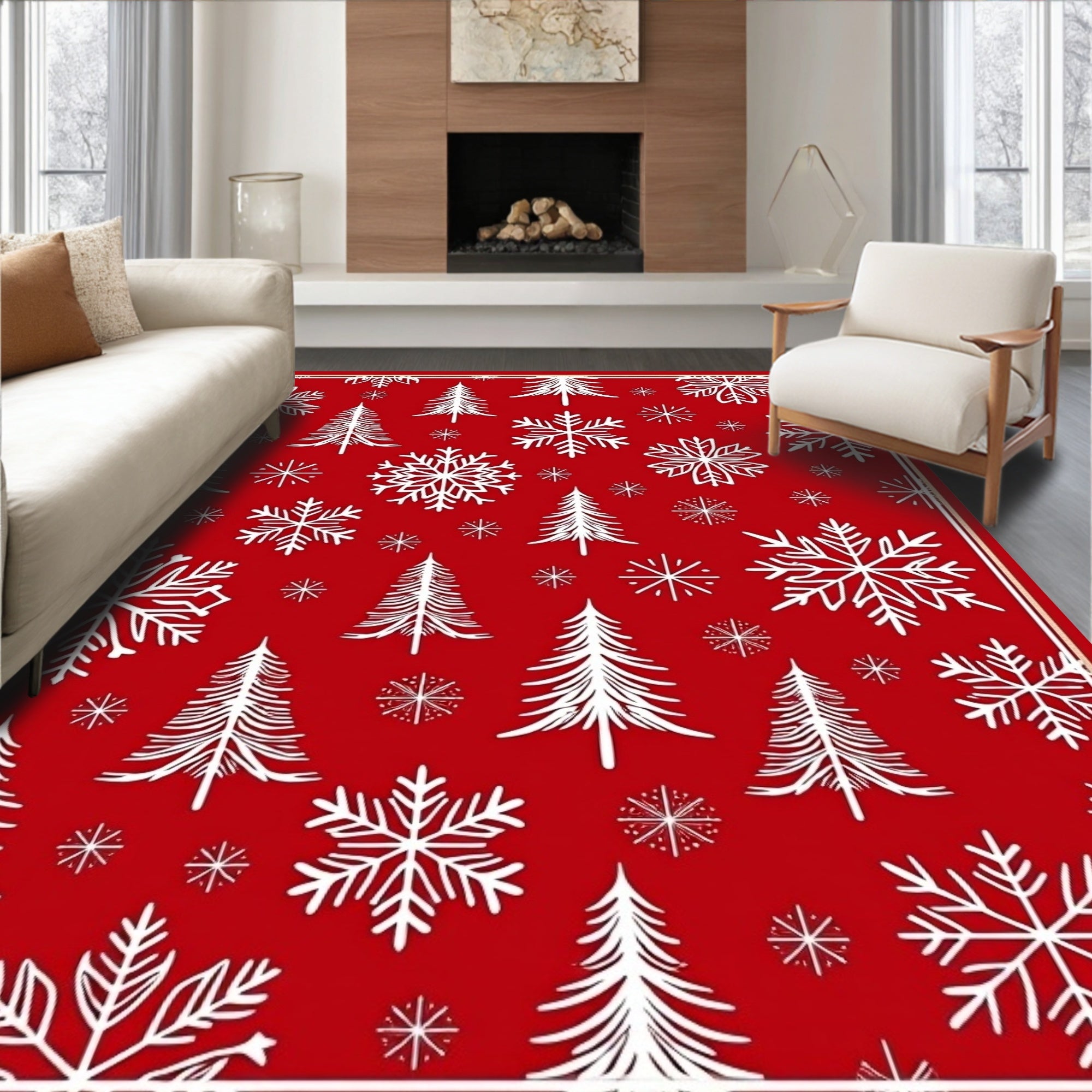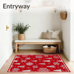 Flatwoven High Traffic Area Rug, Magical North Pole Celebration Floor, Non Slip, Stain Resistant, Washable Area Rugs for Living Room, Bedroom (Red) Overview:
