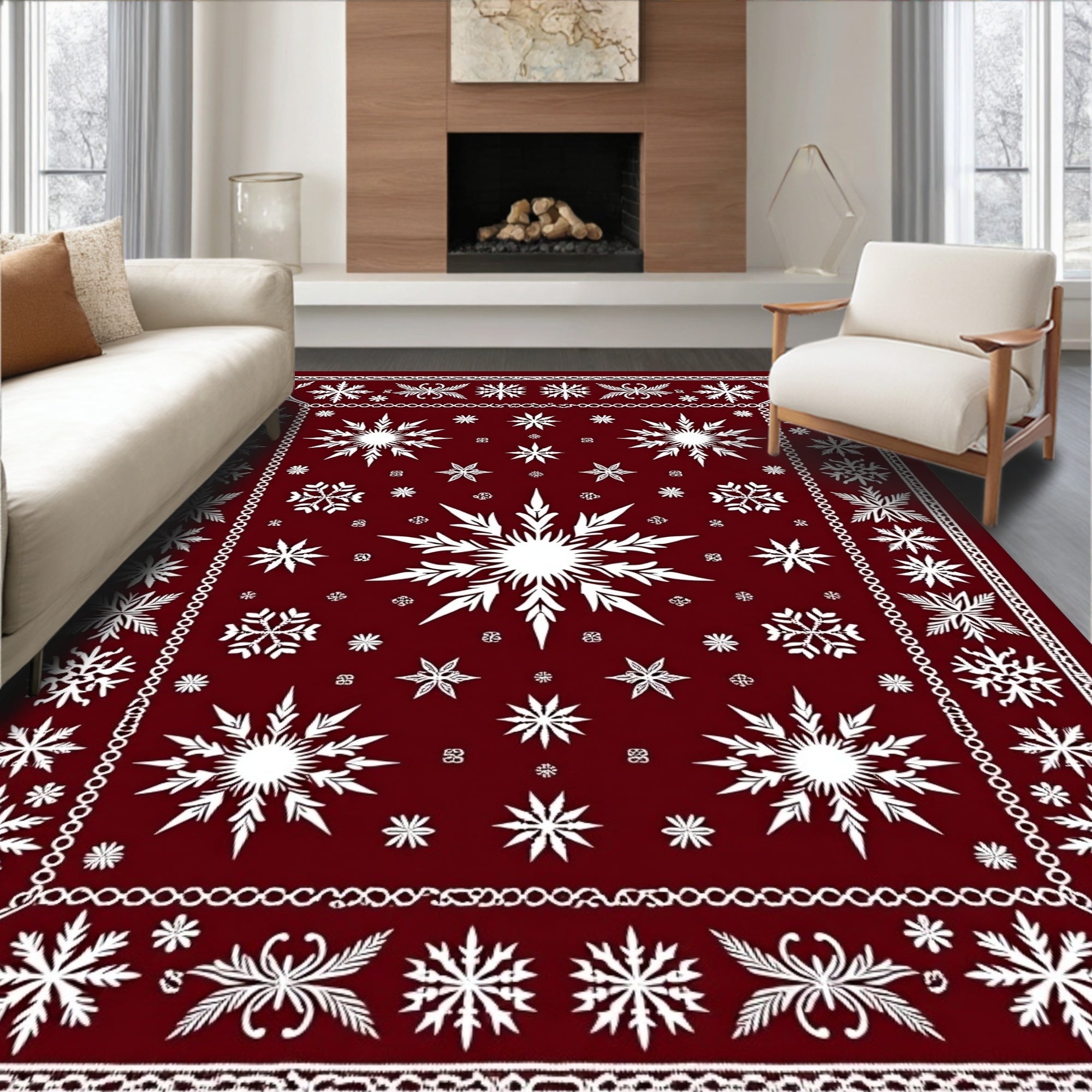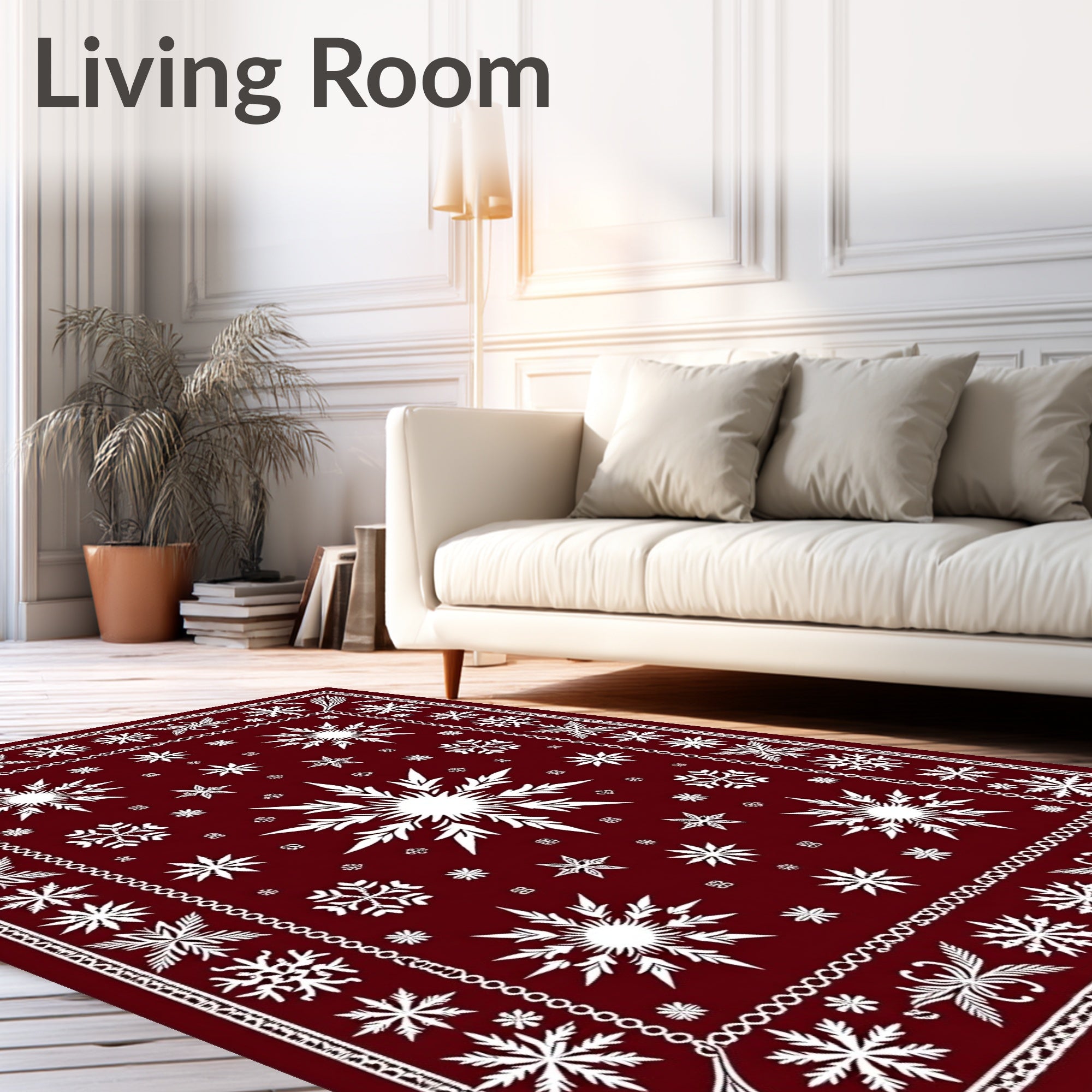 Ultra Soft Area Rug, Non Slip, Stain Resistant, Washable Area Rugs for Living Room, Bedroom, Magical North Yuletide Celebration Hearth Adornment(Red) Overview: