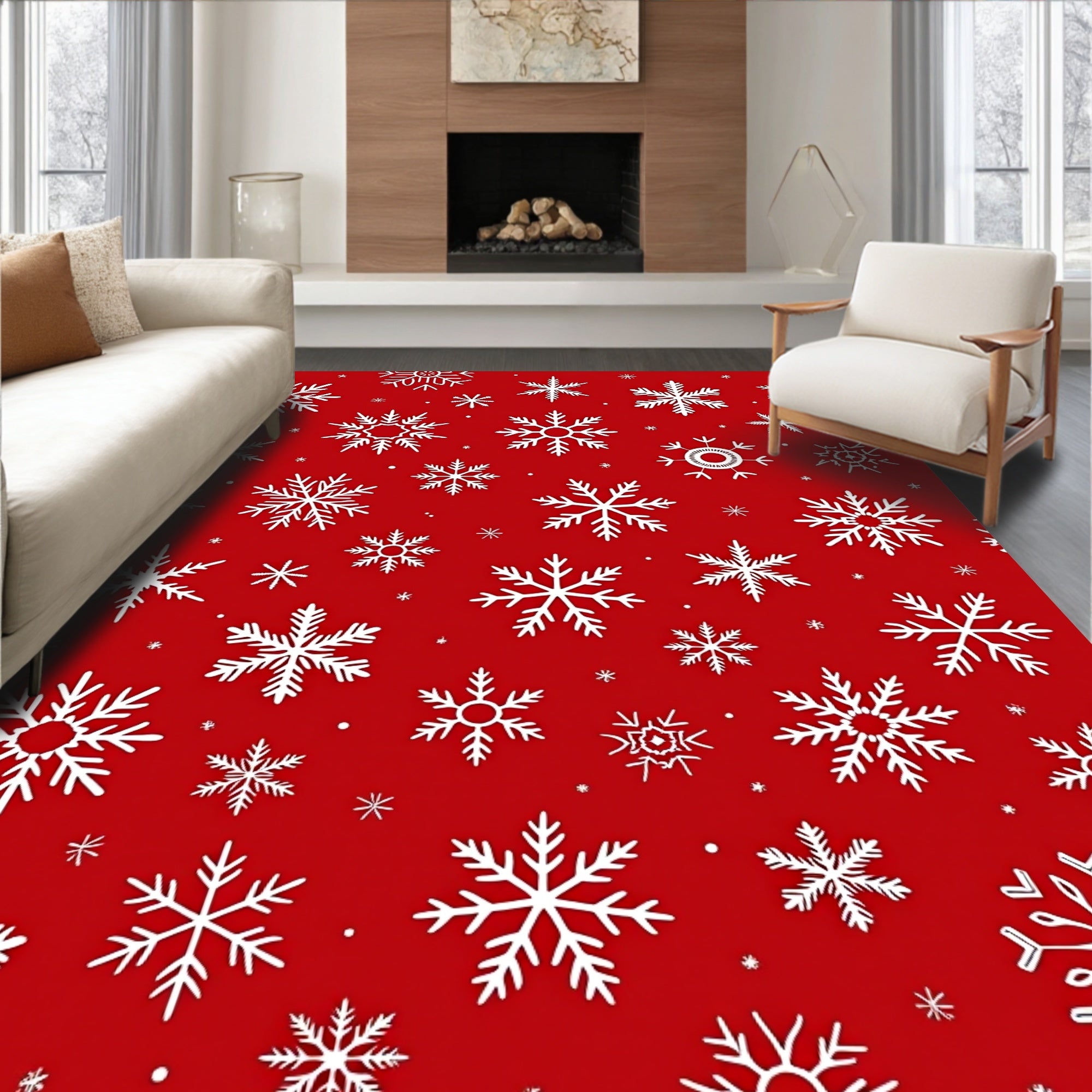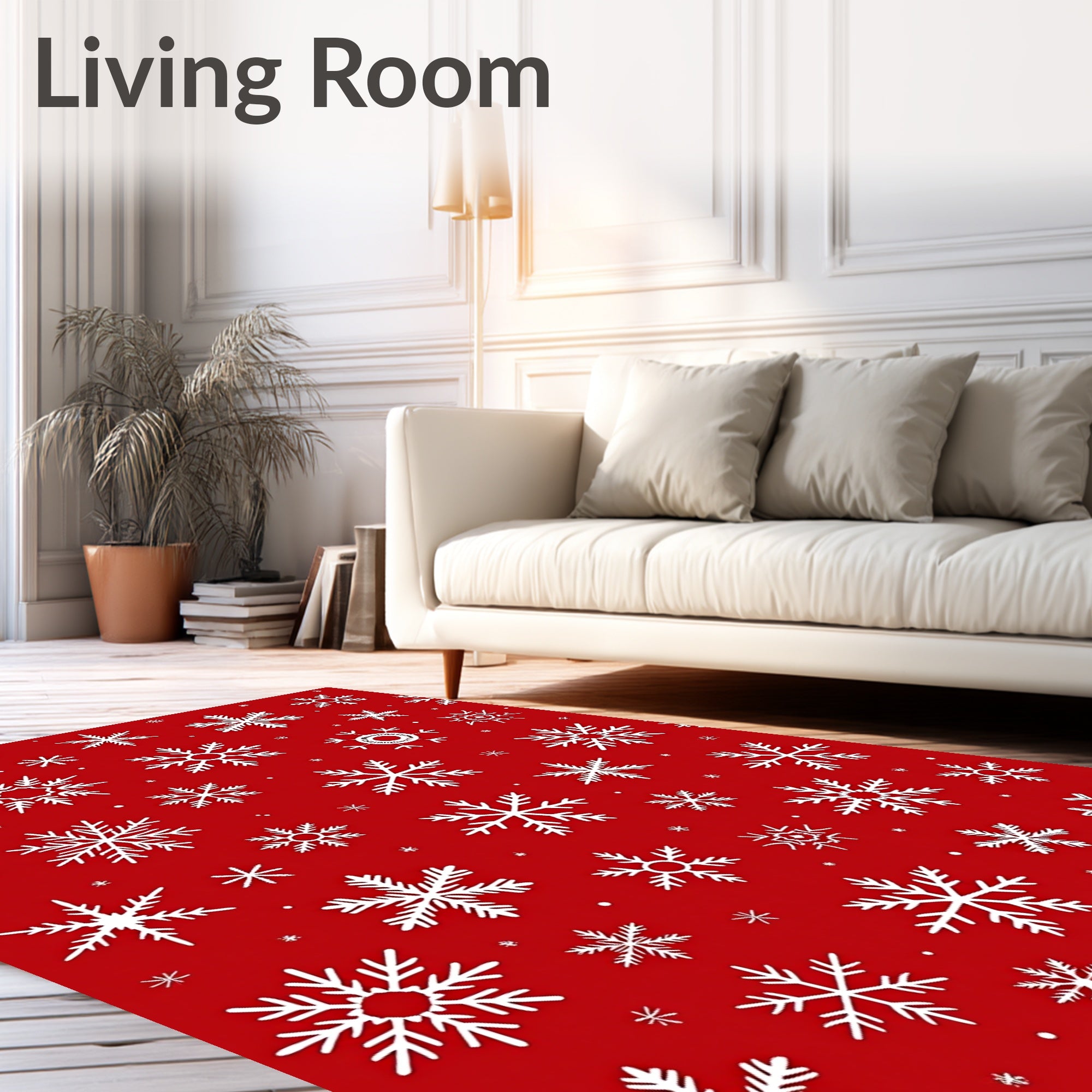 Ultra Soft Area Rug, Non Slip, Stain Resistant, Washable Area Rugs for Living Room, Bedroom, Magical Snowfall Dreamscape Enchantment(Red) Overview: