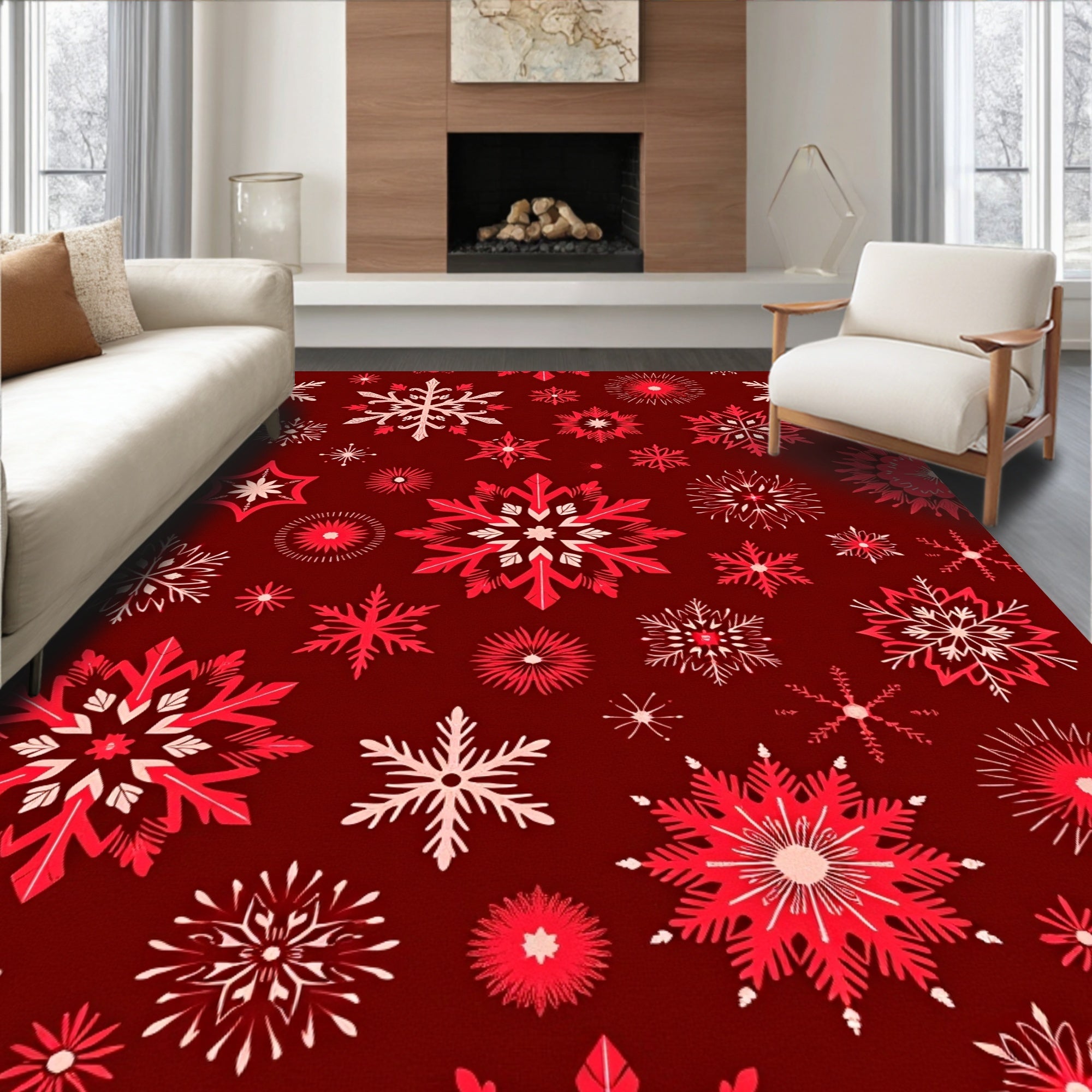 Ultra Soft Area Rug, Non Slip, Stain Resistant, Washable Area Rugs for Living Room, Bedroom, Magical Sparkling Yuletide Spectacular Wonderful(Red) Overview: