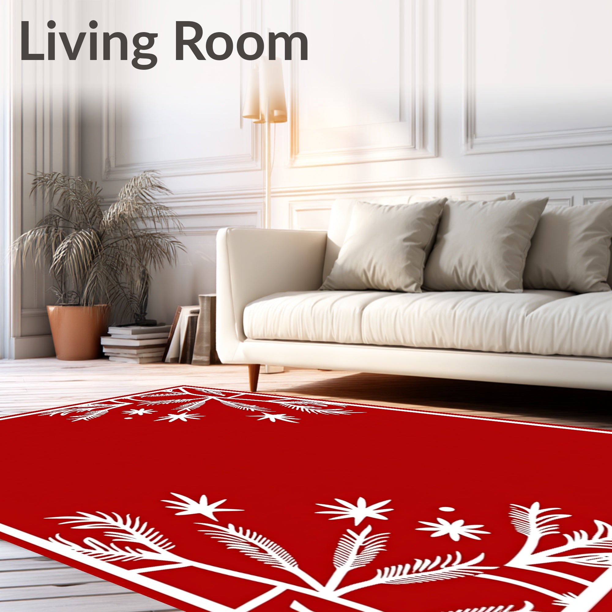 Ultra Soft Area Rug, Non Slip, Stain Resistant, Washable Area Rugs for Living Room, Bedroom, Magical Winter Accent Featuring Texture(Red) Overview: