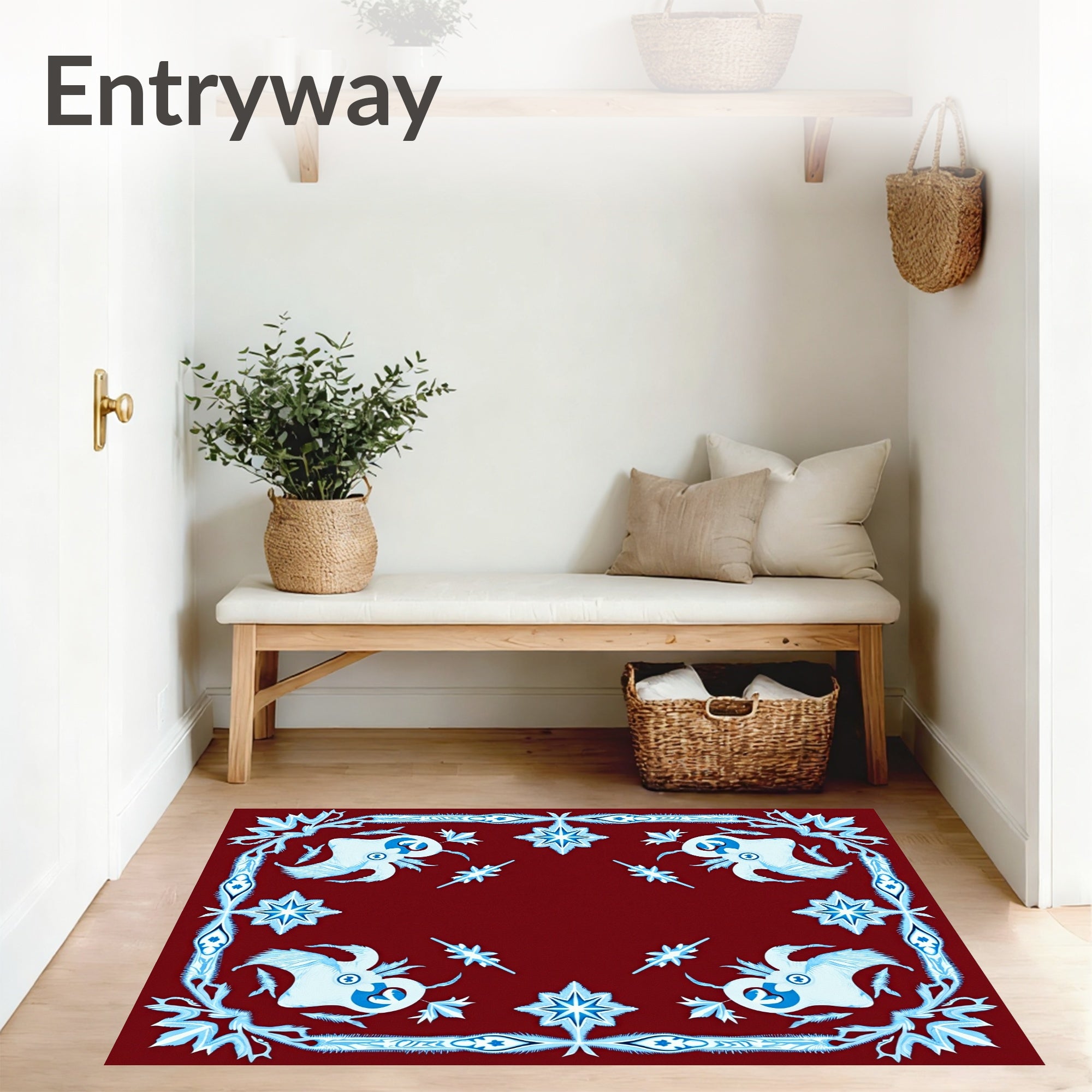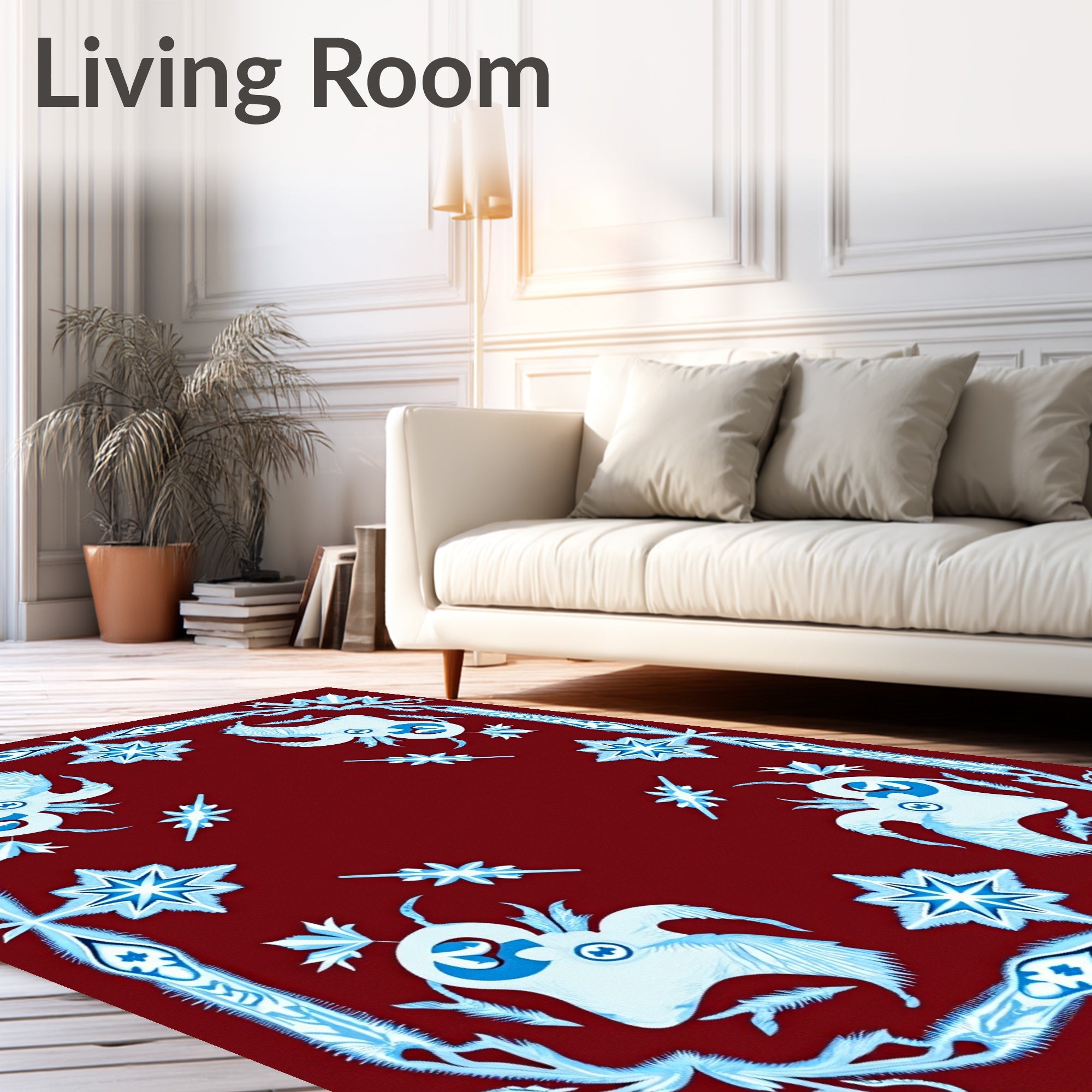 Ultra Soft Area Rug, Non Slip, Stain Resistant, Washable Area Rugs for Living Room, Bedroom, Magical Winter Assembly with Crystalline Snowdrift Borders(Red) Overview: