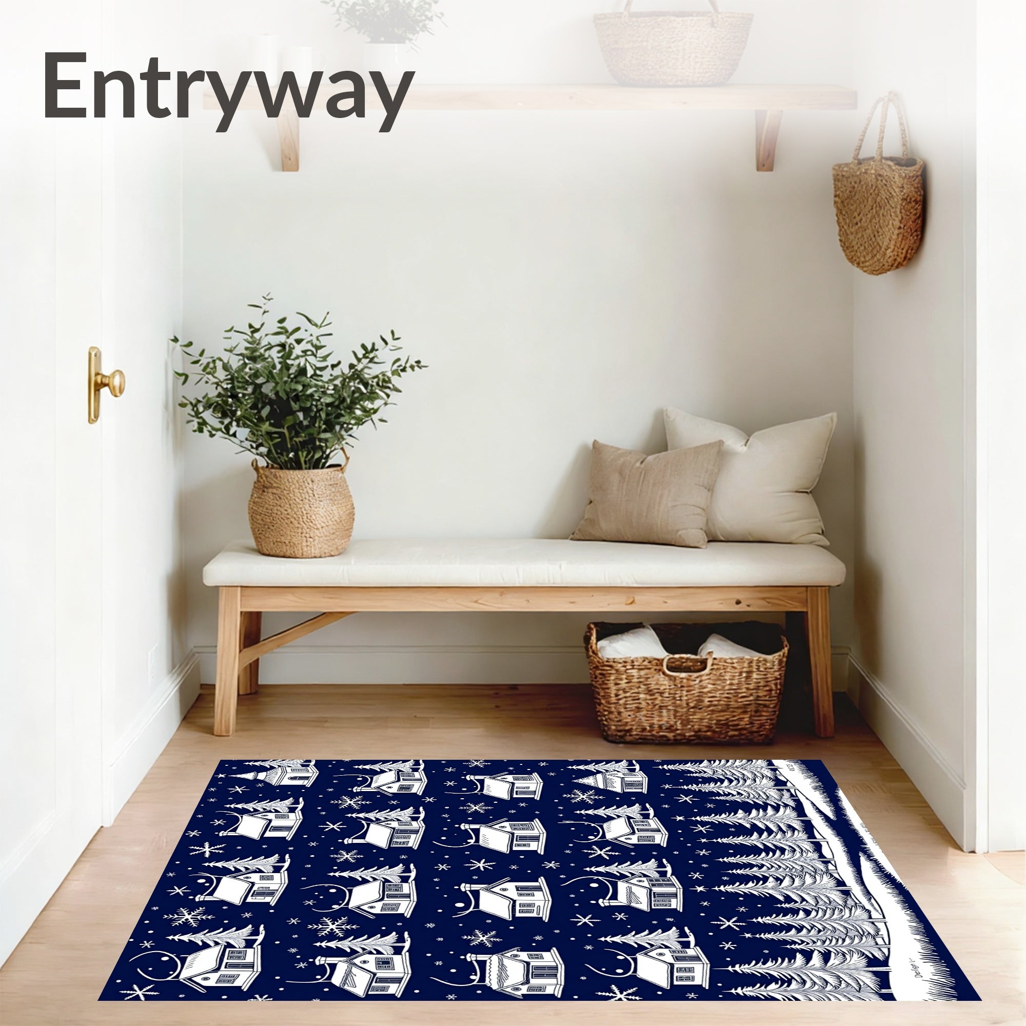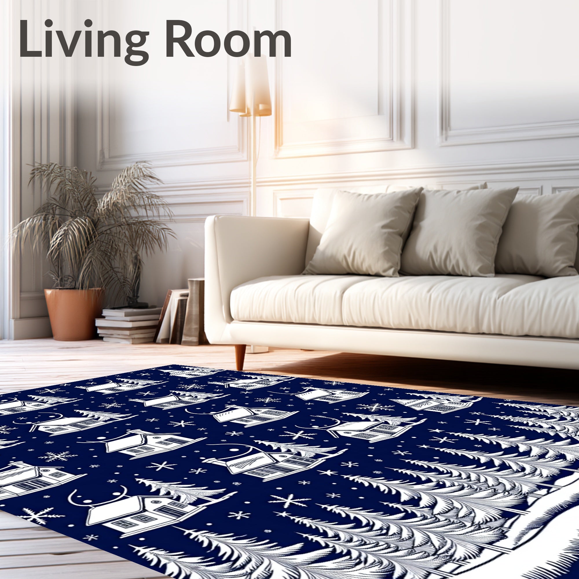 Ultra Soft Area Rug, Non Slip, Stain Resistant, Washable Area Rugs for Living Room, Bedroom, Magical Winter Wonderland Snowy Village Decorative Accent(Blue) Overview: