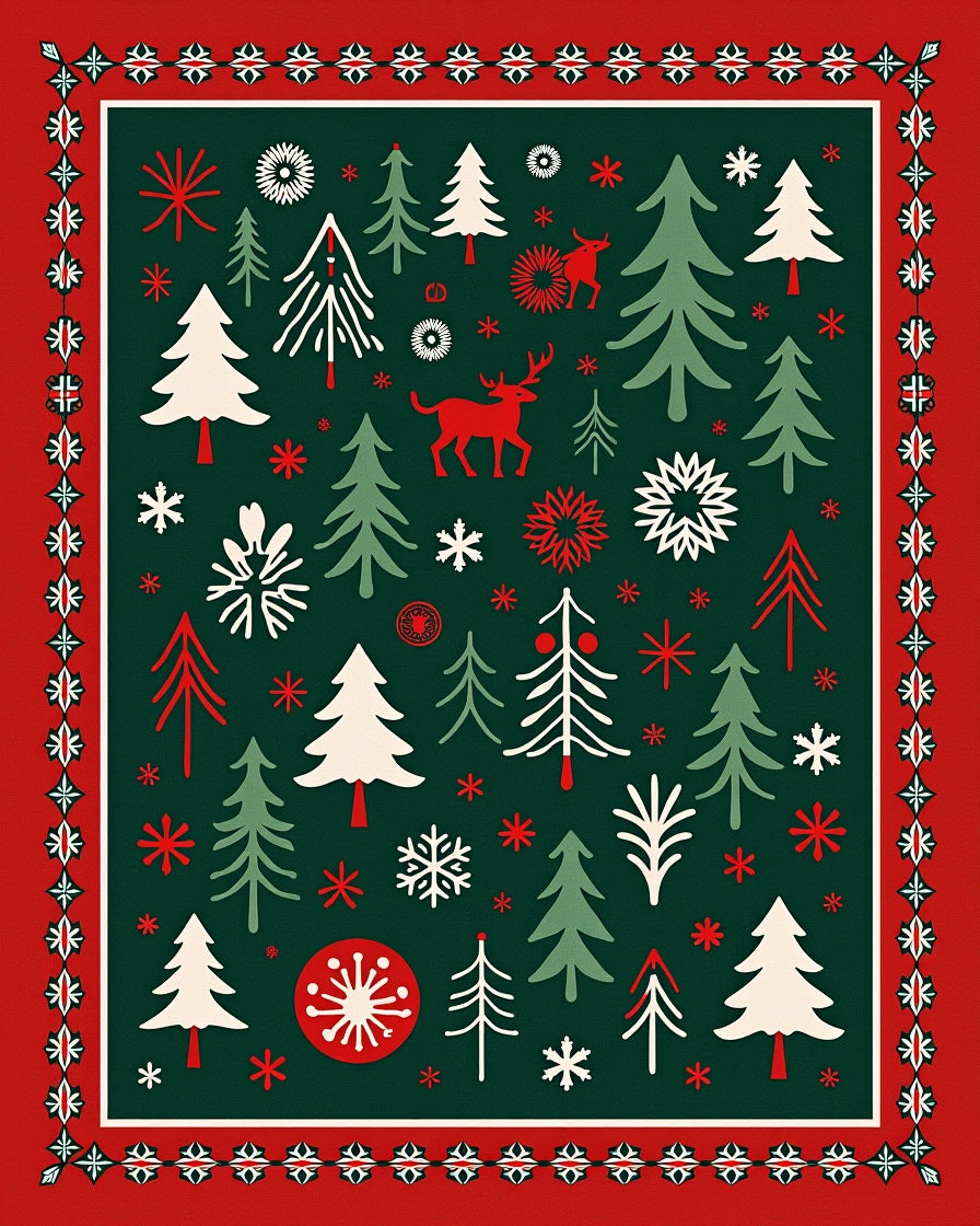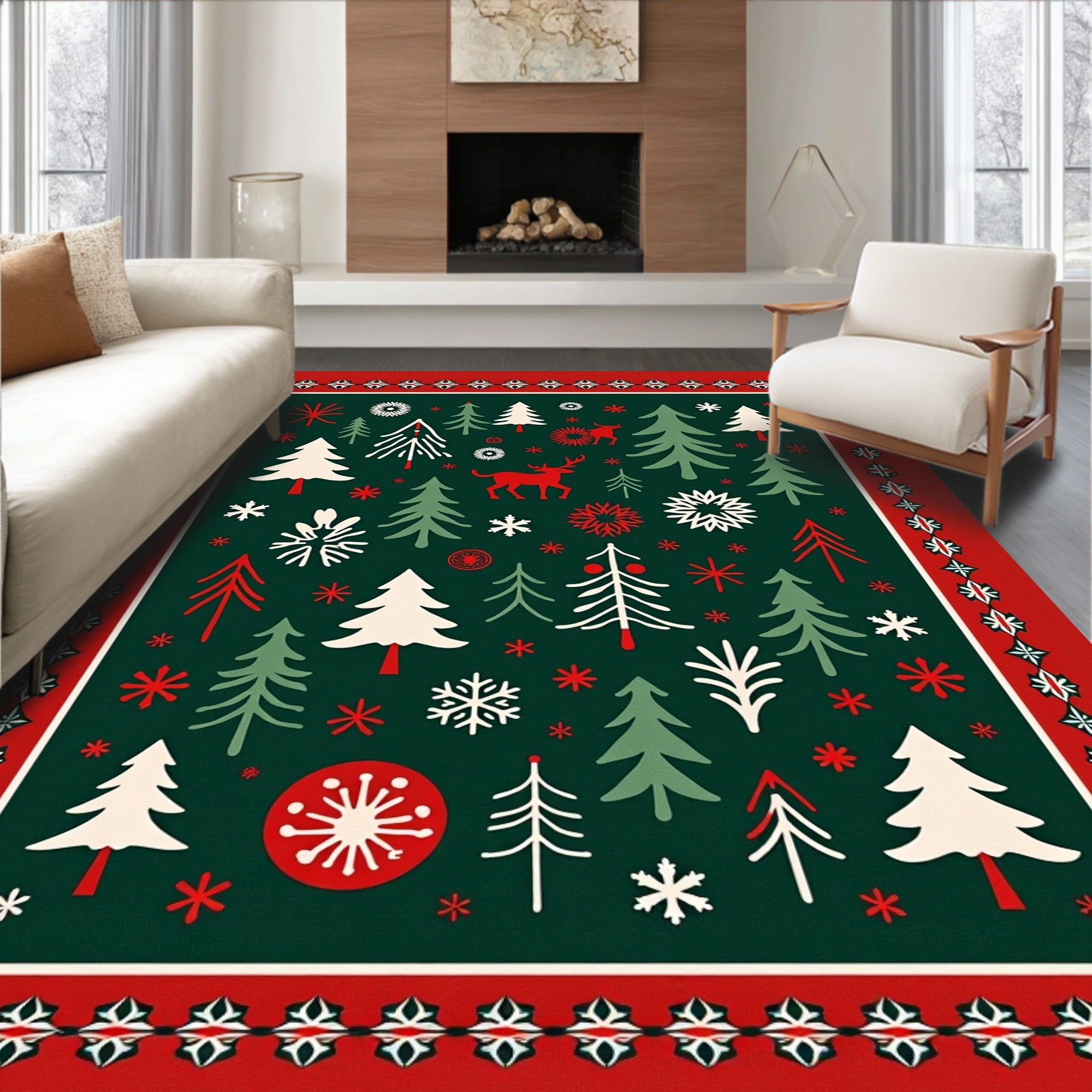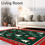 Ultra Soft Area Rug, Non Slip, Stain Resistant, Washable Area Rugs for Living Room, Bedroom, Magical Woodland Yuletide Celebration Pathway Decoration(Green) Overview: