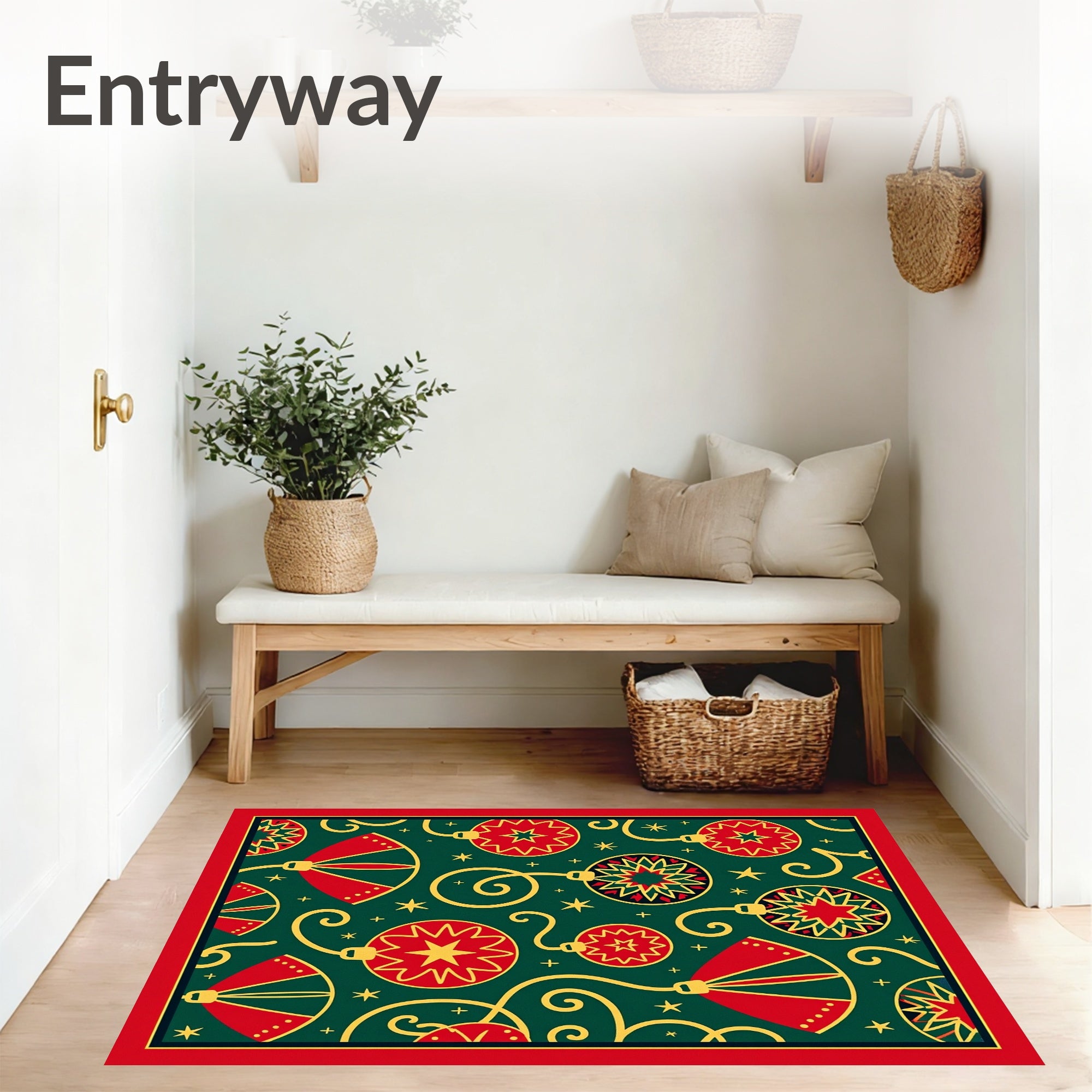 Ultra Soft Area Rug, Non Slip, Stain Resistant, Washable Area Rugs for Living Room, Bedroom, Magical Yuletide Celebration Slip Resistant Bath Entrance(Green) Overview:
