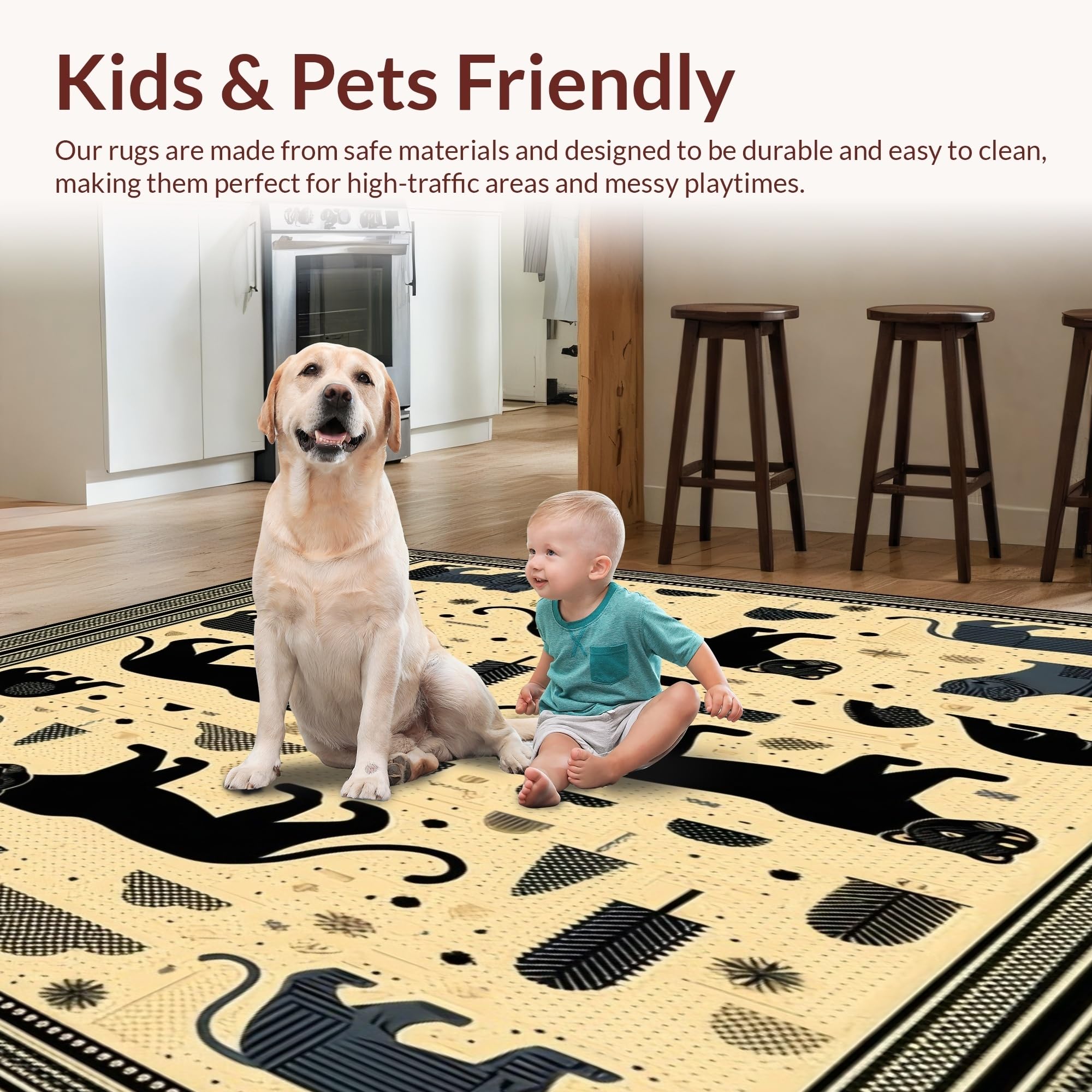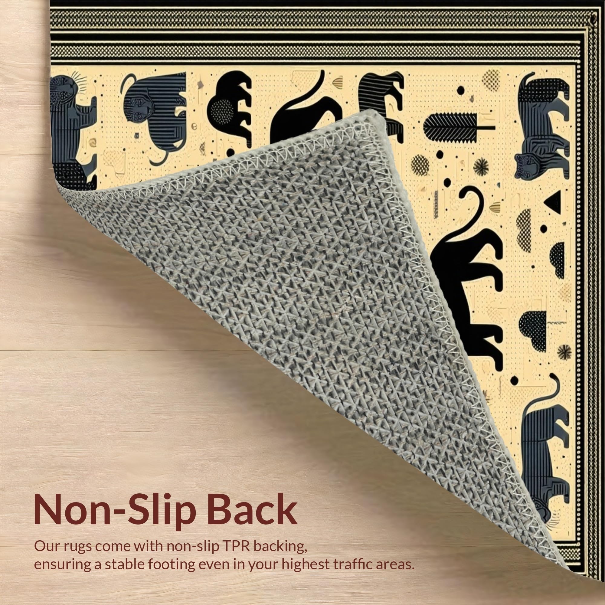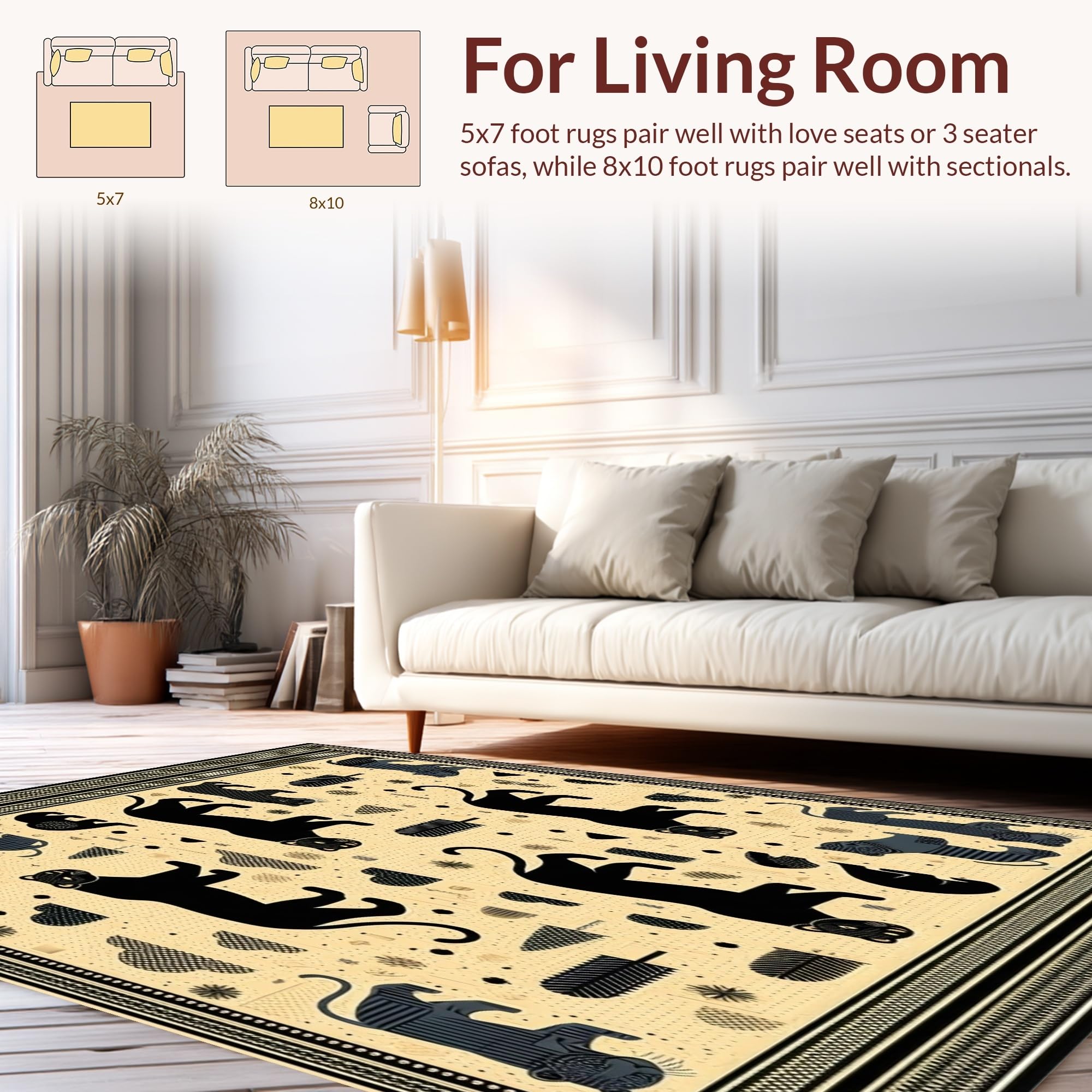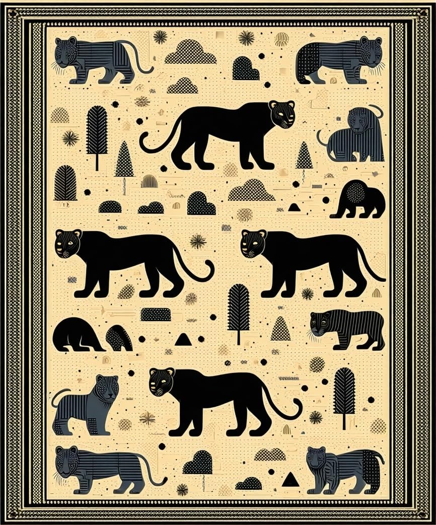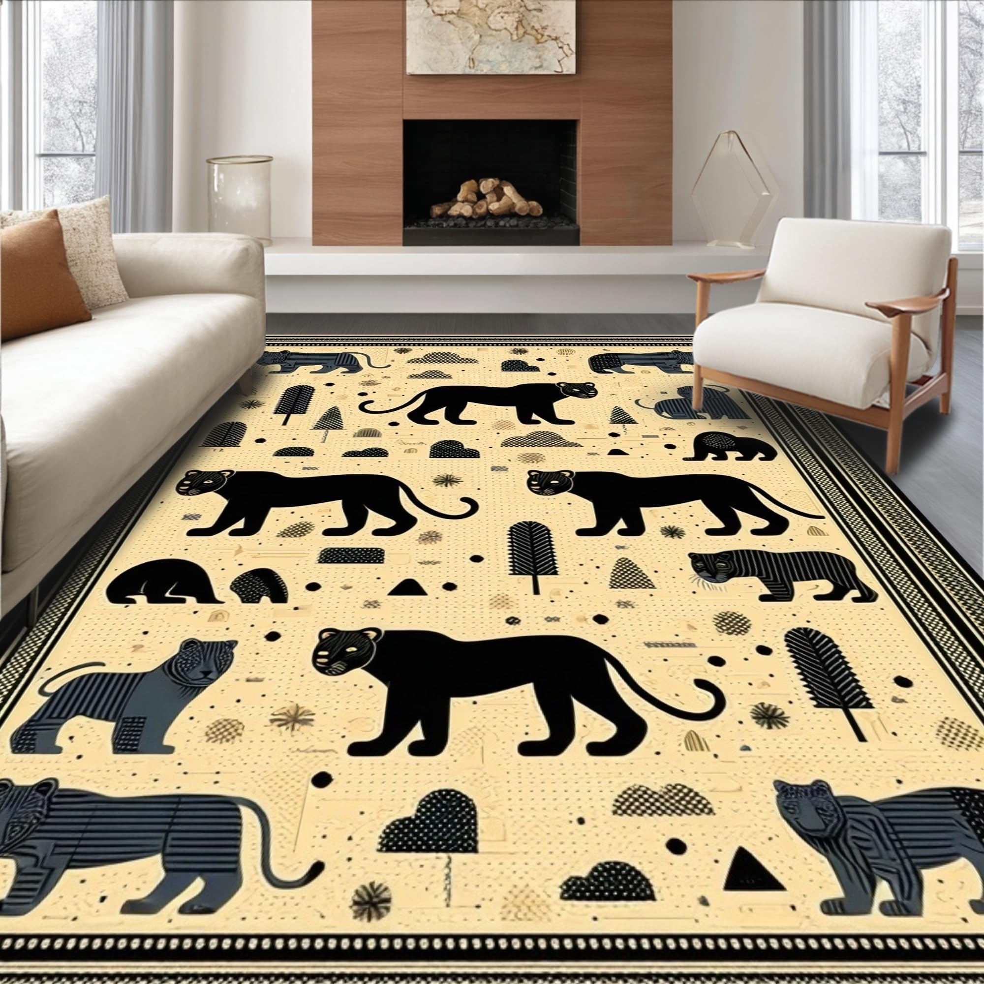 Ultra Soft Area Rug, Non Slip, Stain Resistant, Washable Area Rugs for Living Room, Bedroom, Majestic Big Cat Geometric Area Black Panther Lion Tiger Art(Beige) Overview: