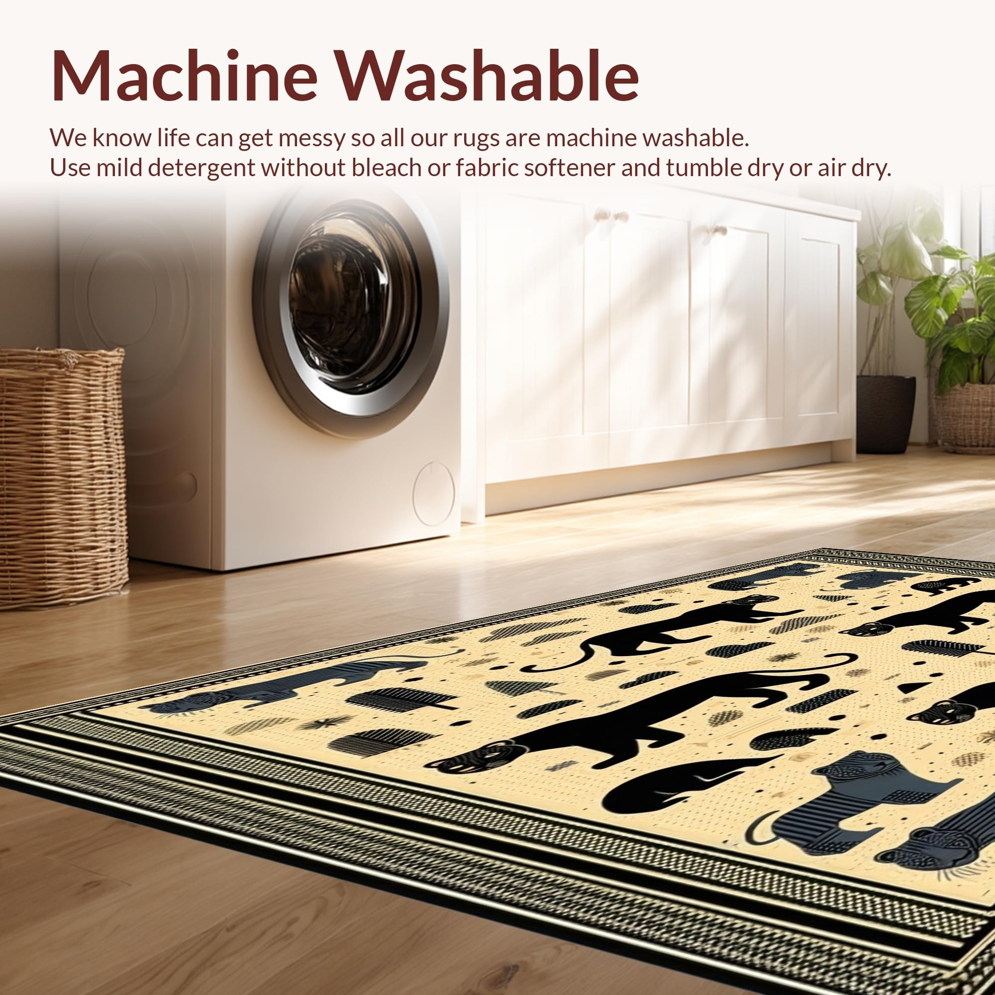 - Machine Washable: Our rugs can be easily thrown in the wash machine.