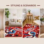 Ultra Soft Area Rug, Non Slip, Stain Resistant, Washable Area Rugs for Living Room, Bedroom, Majestic Fiery Ice Duality Theme(Red) Overview: