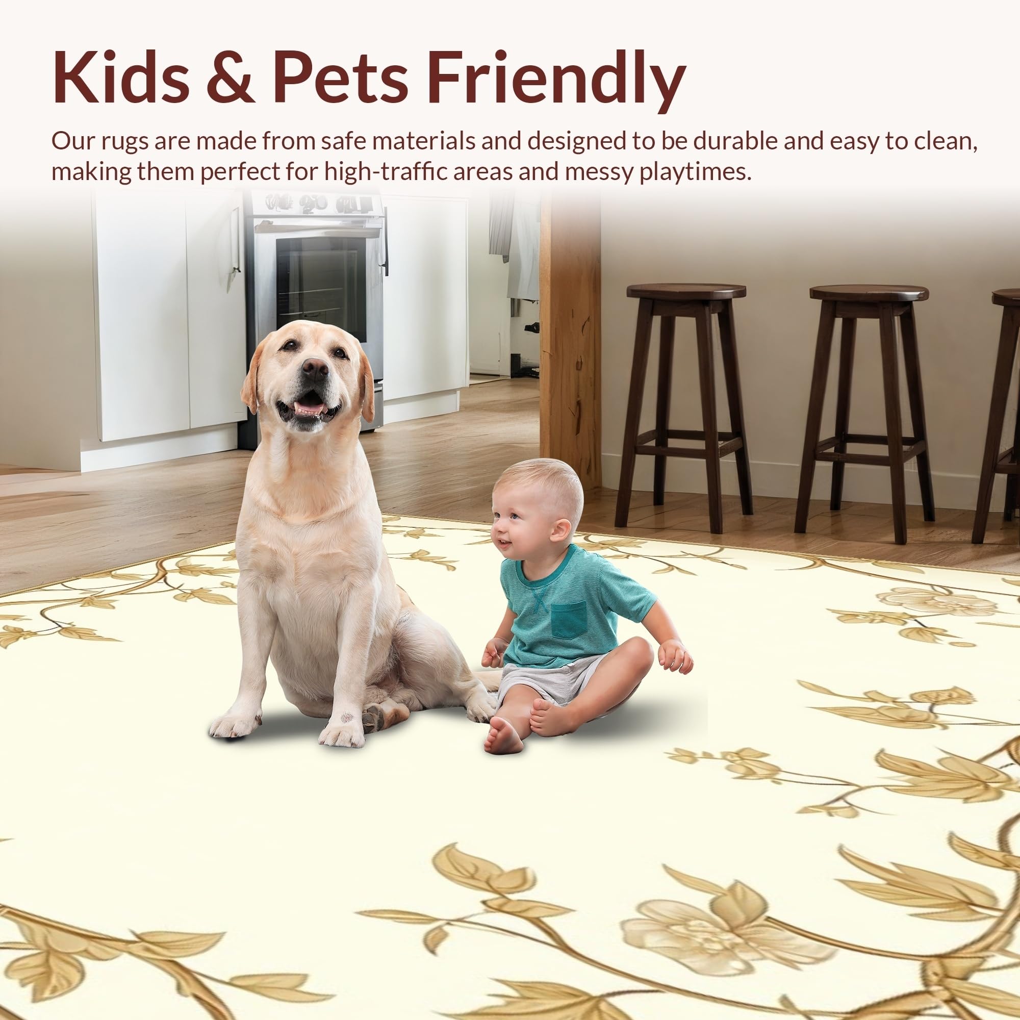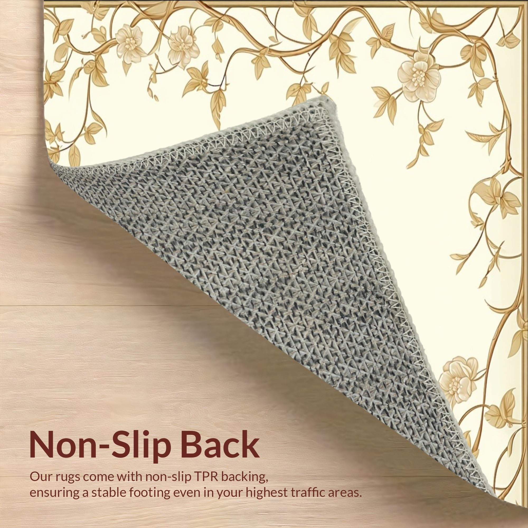 Ultra Soft Area Rug, Non Slip, Stain Resistant, Washable Area Rugs for Living Room, Bedroom, Majestic Heirloom Area Artisan Crafted Botanical(Beige) Overview: