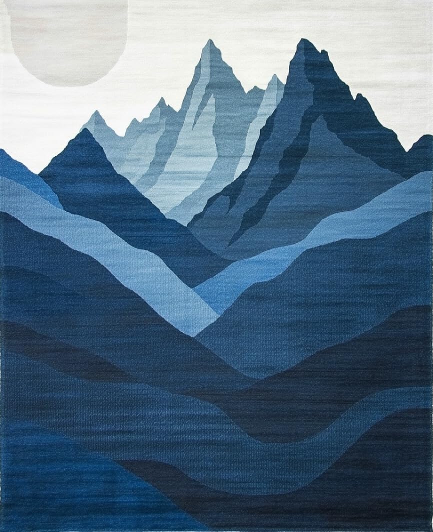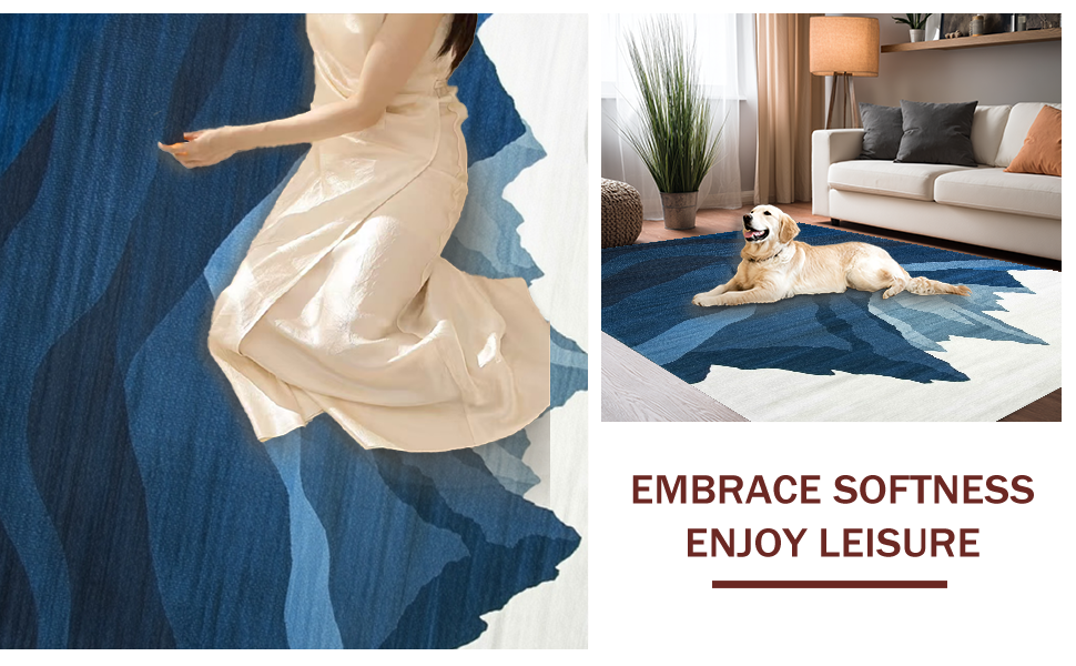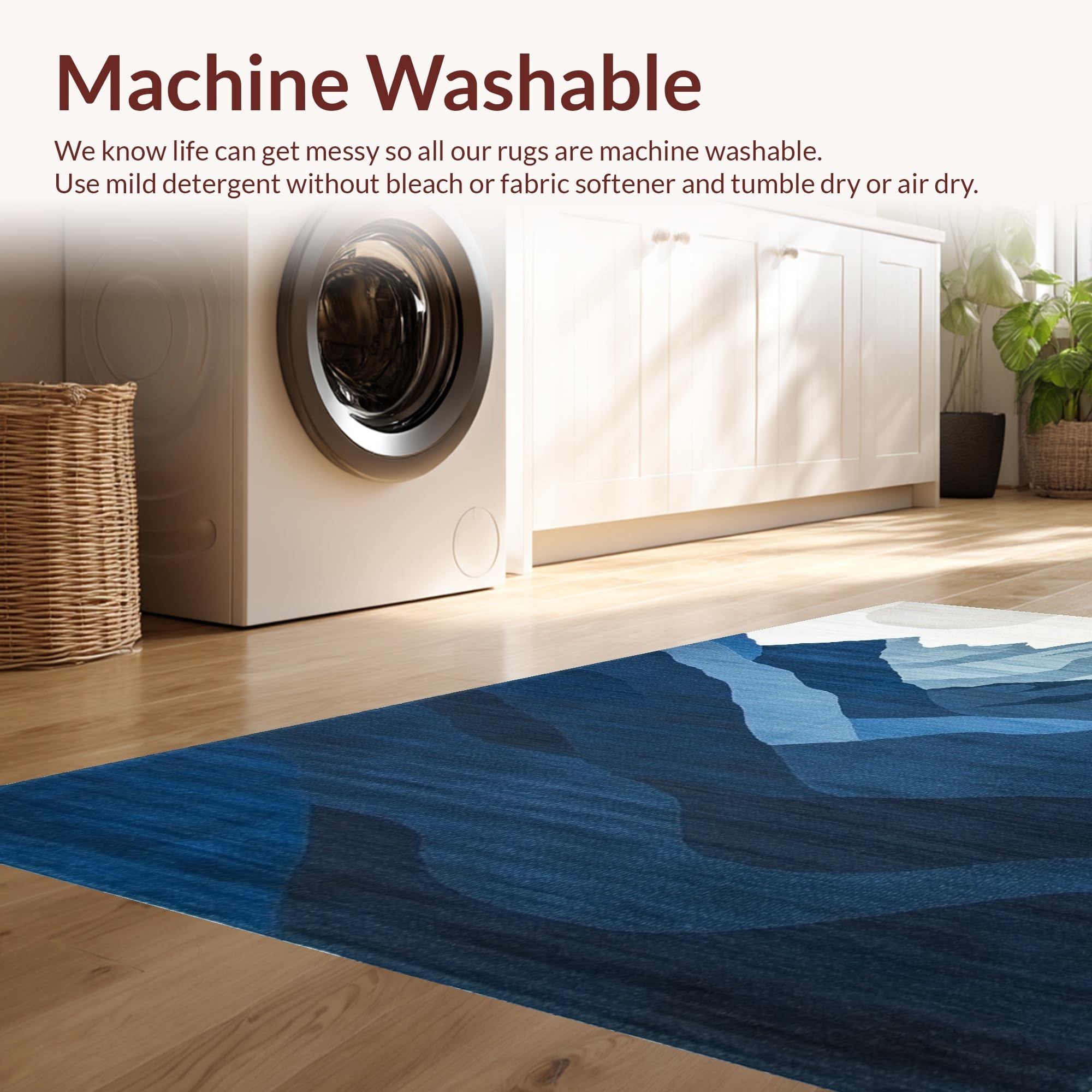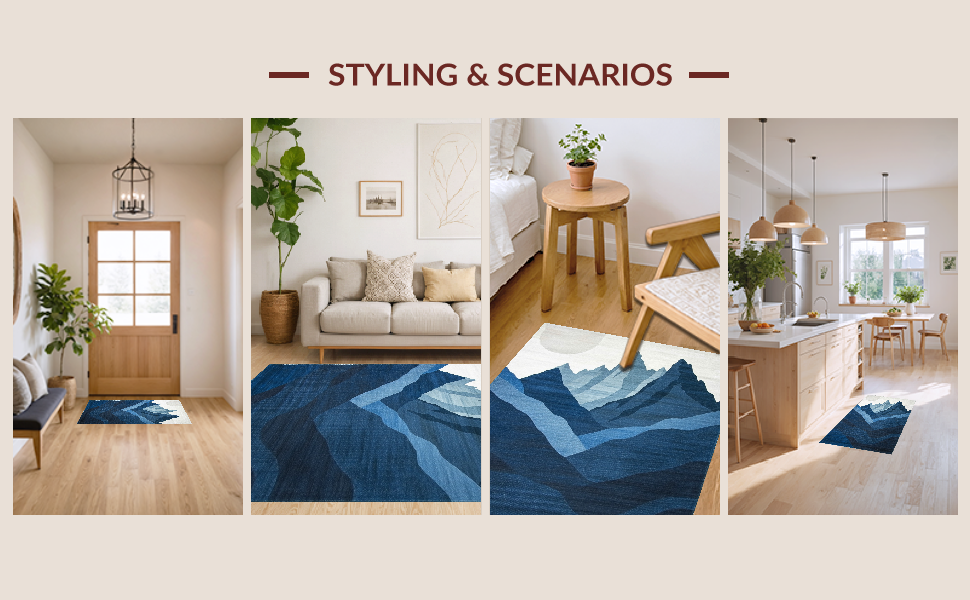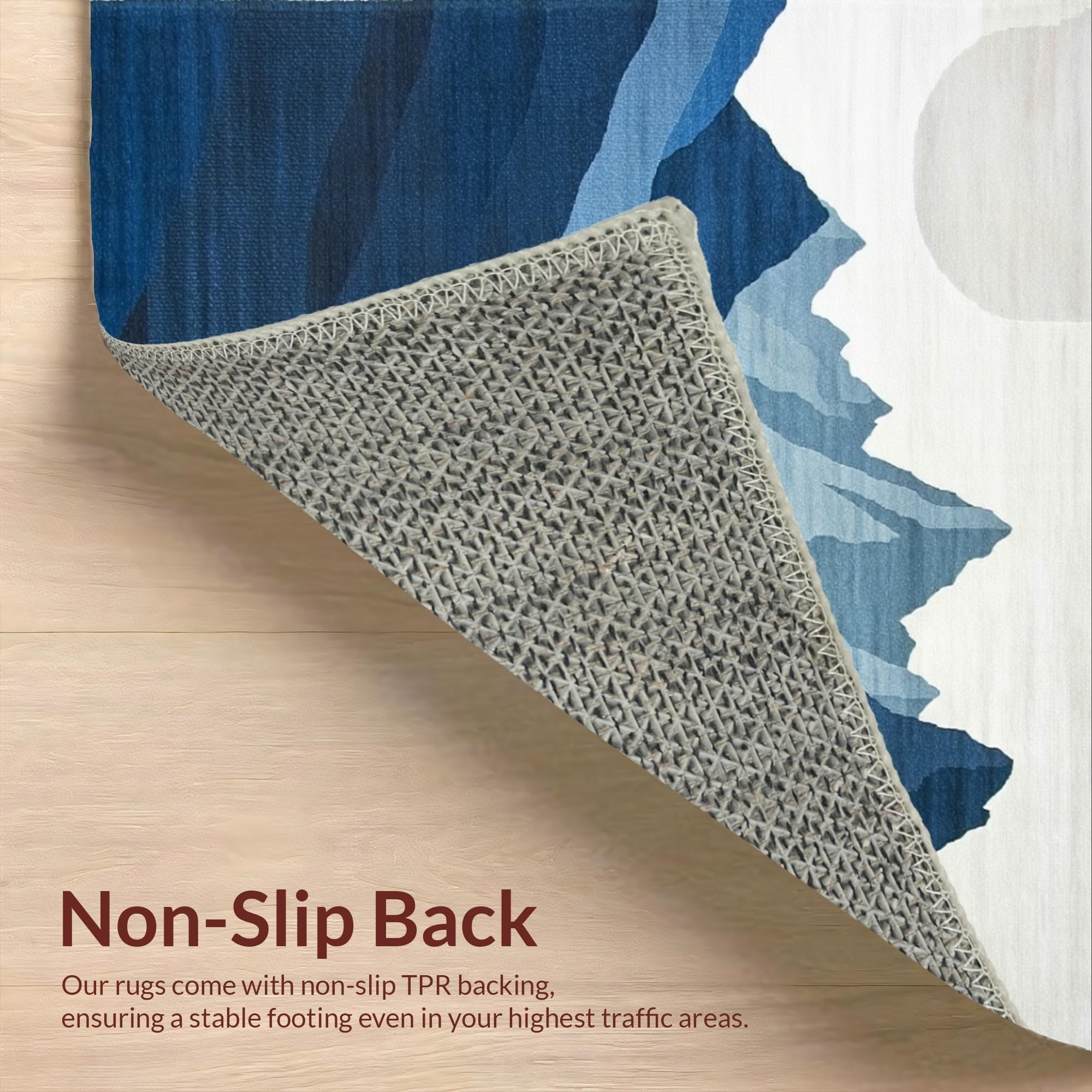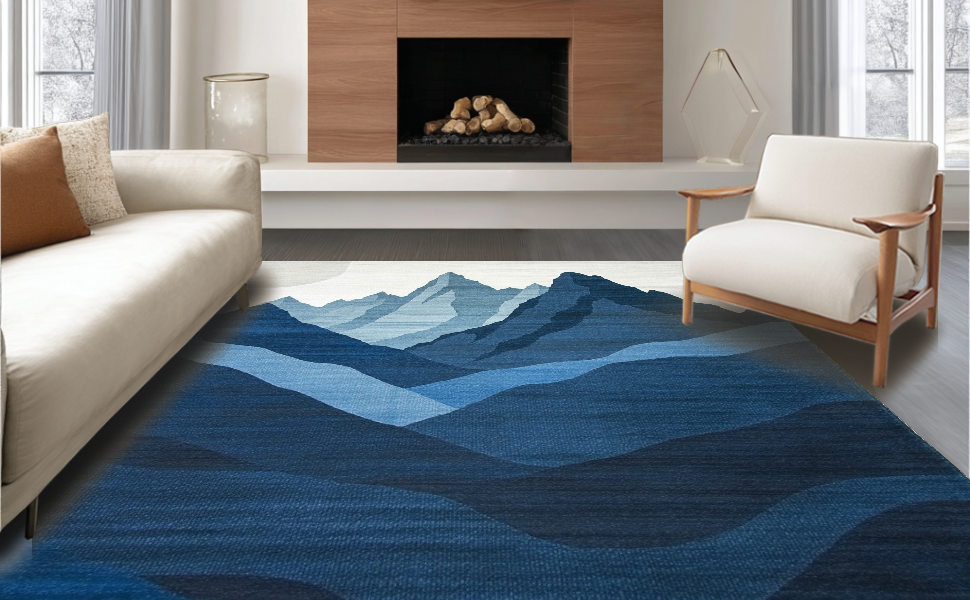Ultra Soft Area Rug, Non Slip, Stain Resistant, Washable Area Rugs for Living Room, Bedroom, Majestic Mountain Silhouette Aesthetic(Blue) Overview: