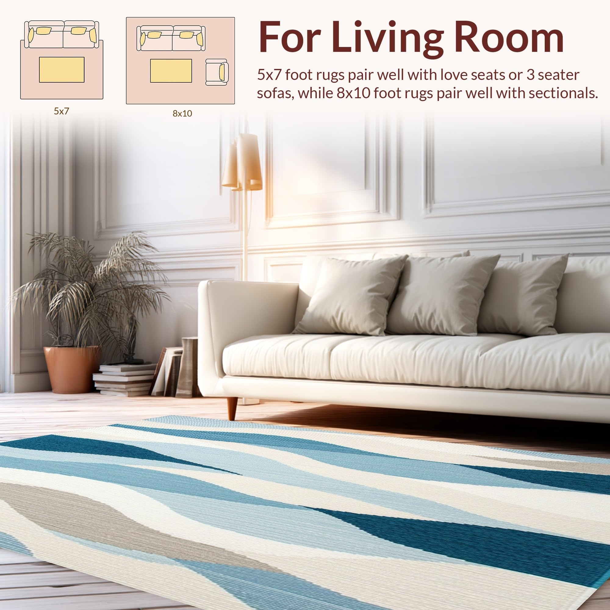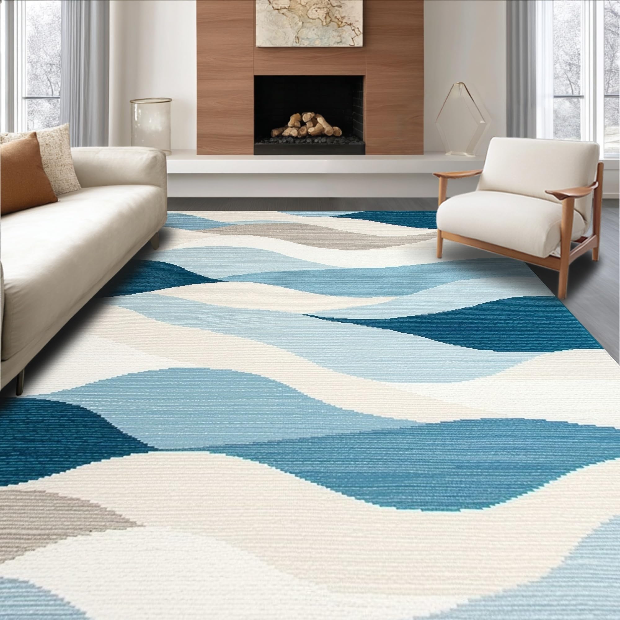 Ultra Soft Area Rug, Non Slip, Stain Resistant, Washable Area Rugs for Living Room, Bedroom, Marbella Collection Area Coastal Beige Inspired(Blue) Overview: