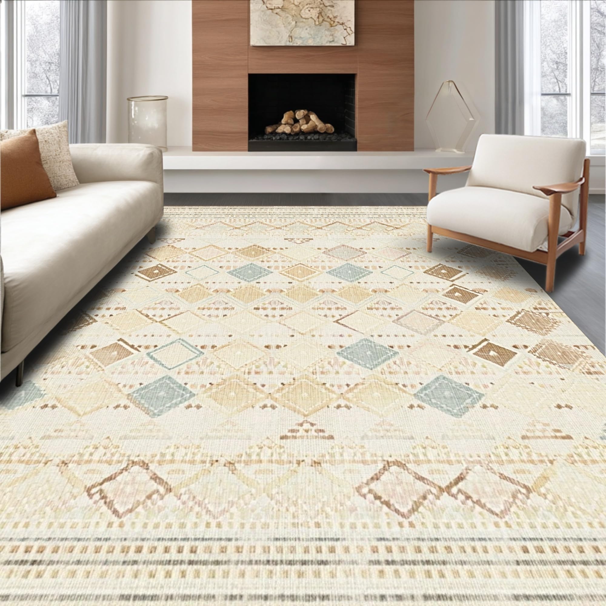 Ultra Soft Area Rug, Non Slip, Stain Resistant, Washable Area Rugs for Living Room, Bedroom, Marbella Collection Area Contemporary Woven Diamond(Beige) Overview: