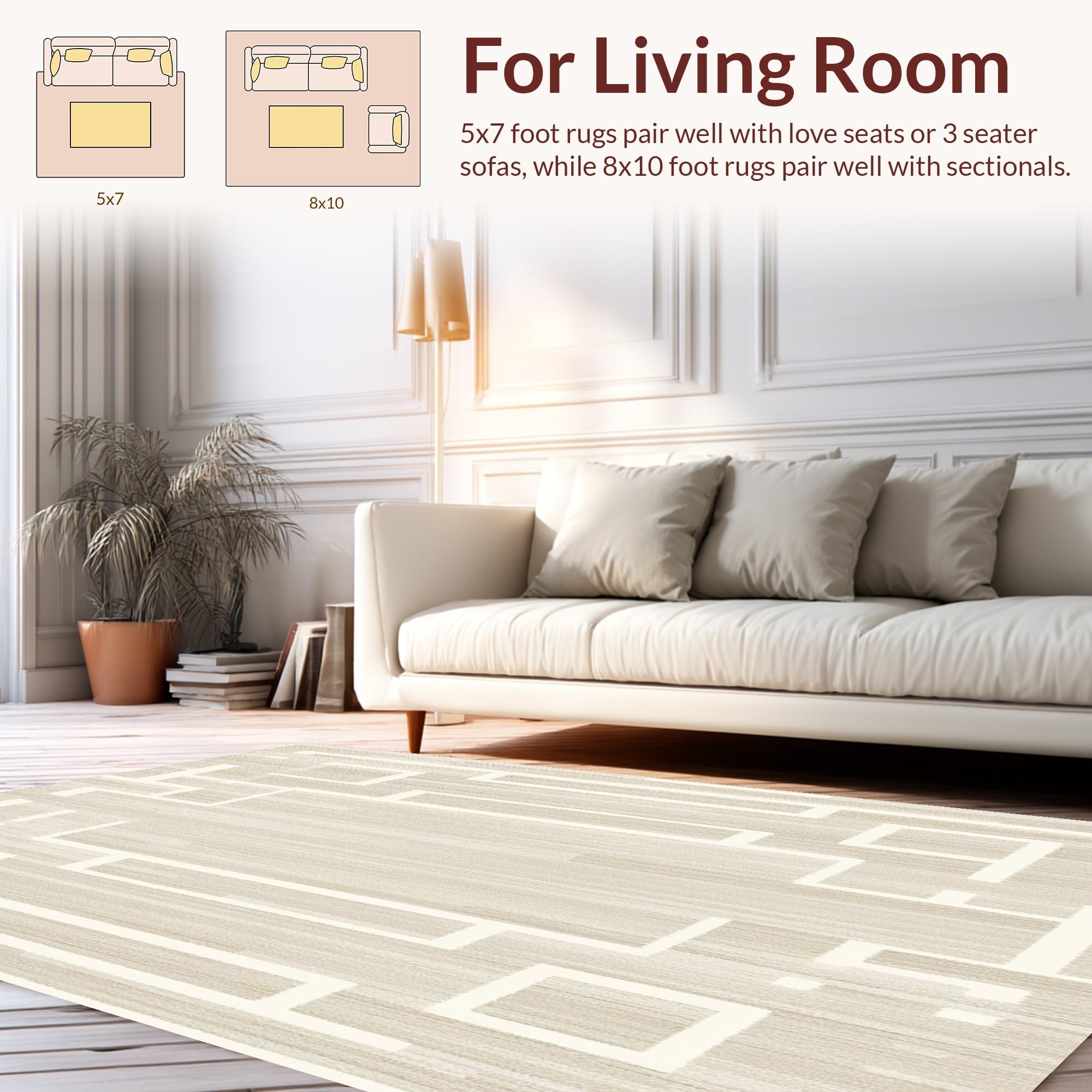 Ultra Soft Area Rug, Non Slip, Stain Resistant, Washable Area Rugs for Living Room, Bedroom, Marbella Collection Area Serene Beige Modern Minimalist(Beige) Overview: