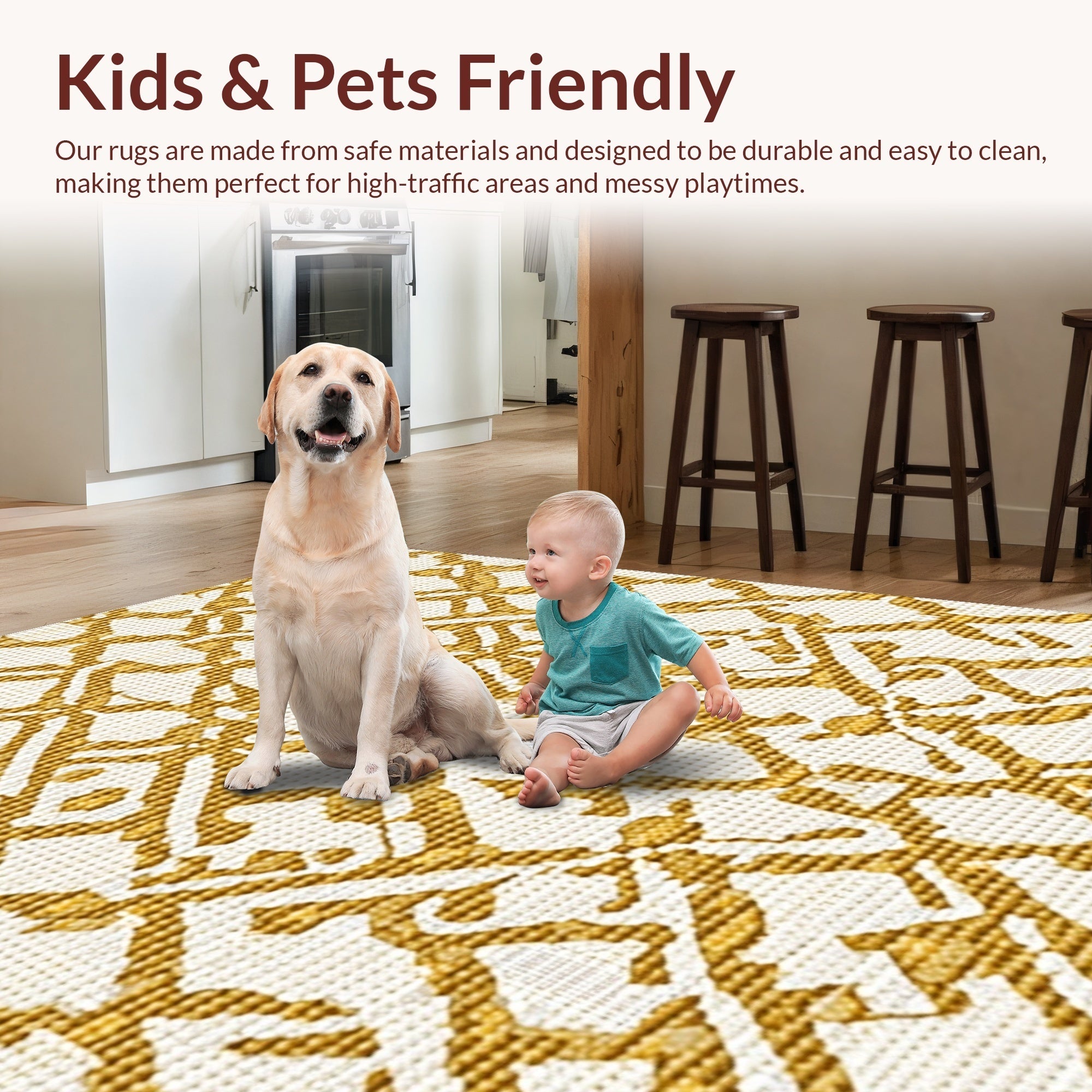 Ultra Soft Area Rug, Non Slip, Stain Resistant, Washable Area Rugs for Living Room, Bedroom, Marble Border Elegant(Gold) Overview: