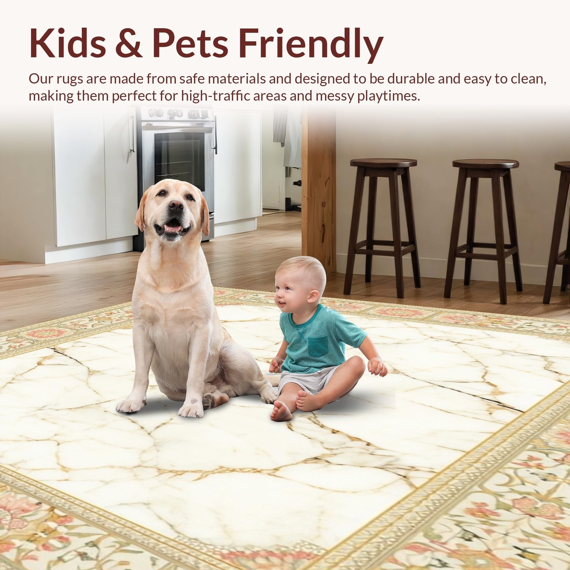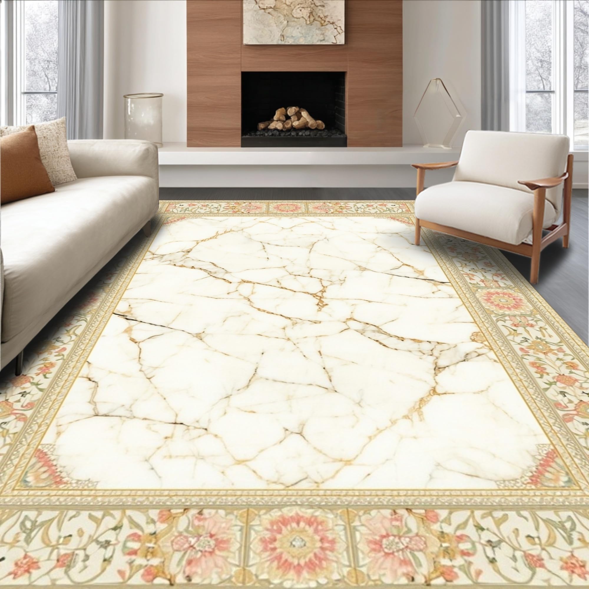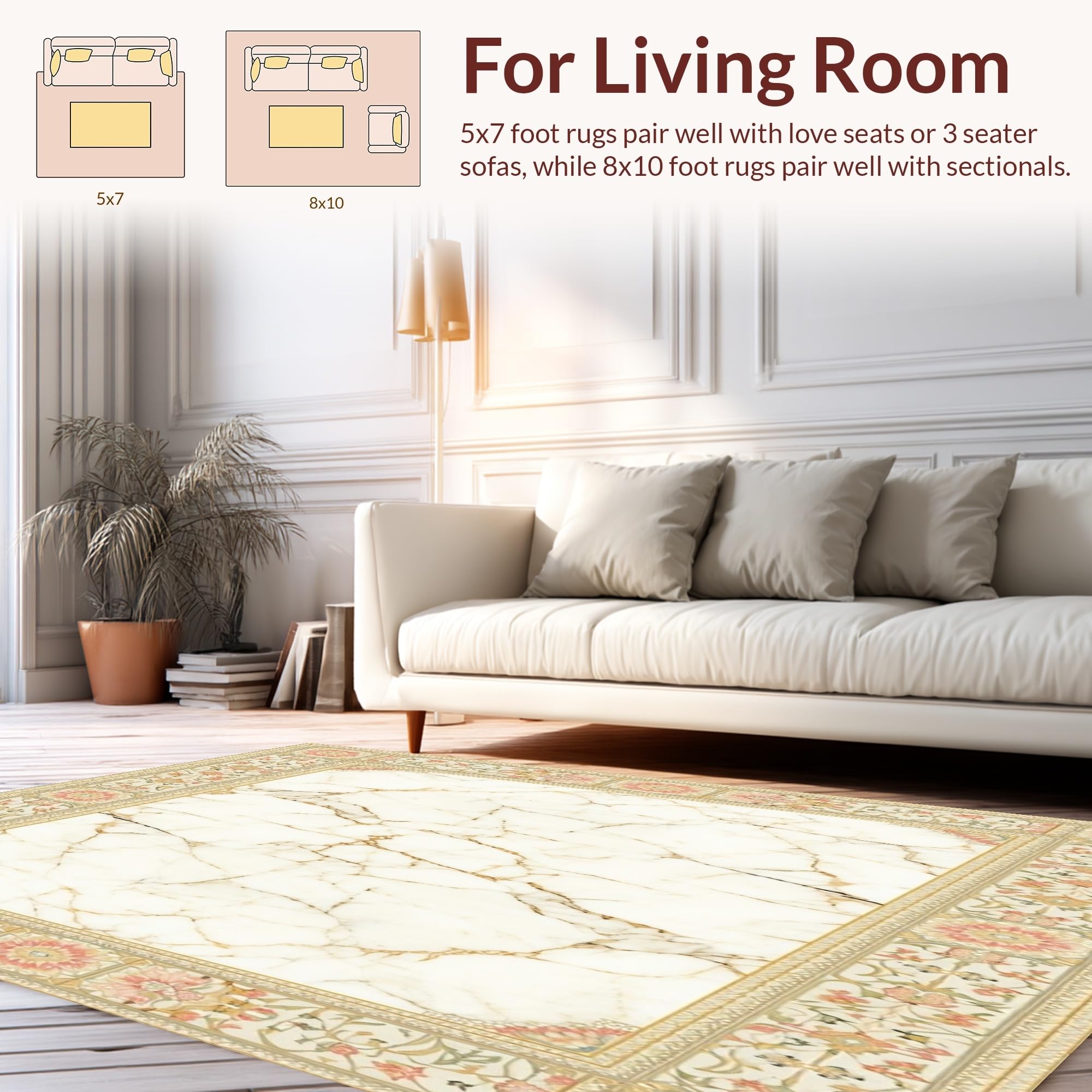 Ultra Soft Area Rug, Non Slip, Stain Resistant, Washable Area Rugs for Living Room, Bedroom, Marble Inspired Bathroom Area Beige(White) Overview: