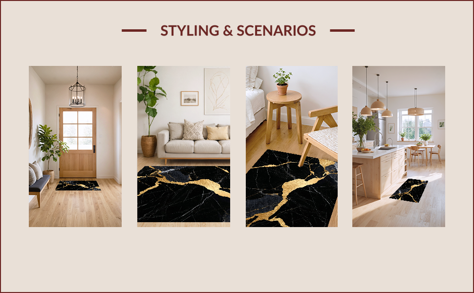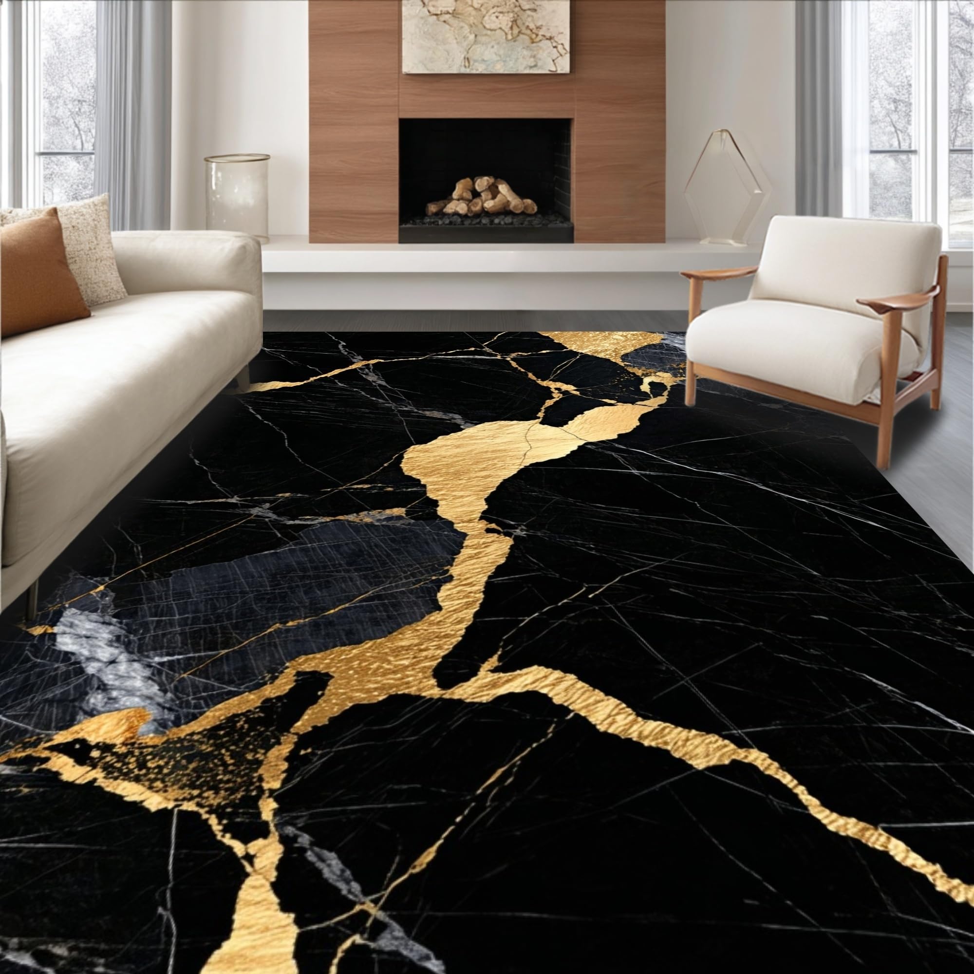 Ultra Soft Area Rug, Non Slip, Stain Resistant, Washable Area Rugs for Living Room, Bedroom, Marble Pattern Bedroom Area Rug Non-Shedding(Black) Overview: