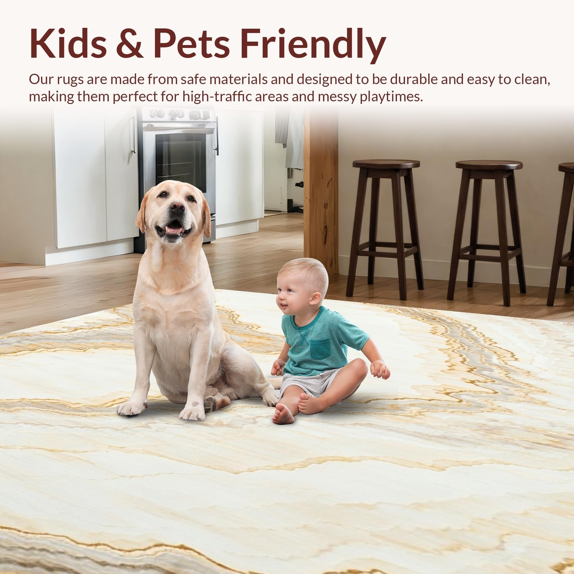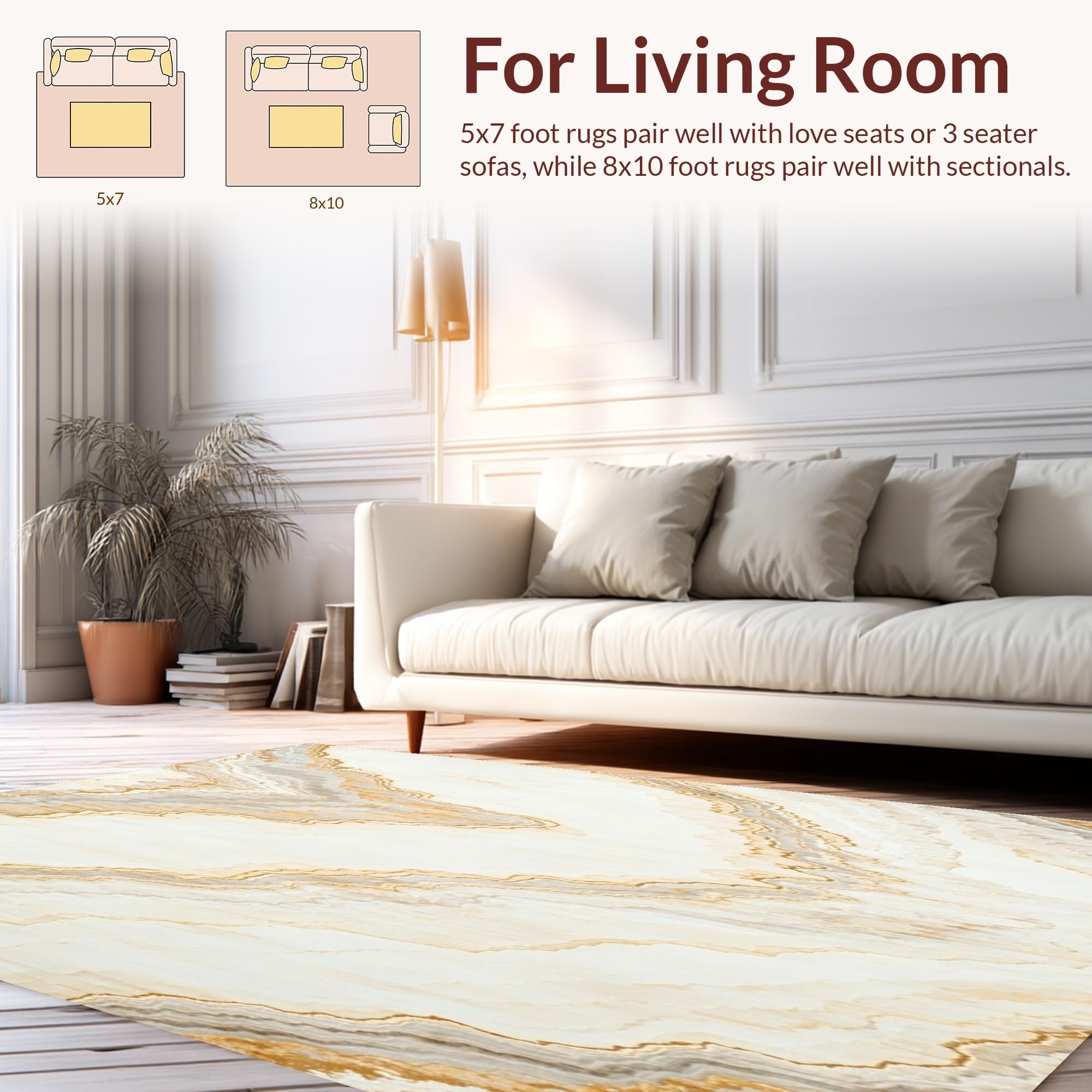 Ultra Soft Area Rug, Non Slip, Stain Resistant, Washable Area Rugs for Living Room, Bedroom, Marble Tie Dyed Beige Area(Beige) Overview: