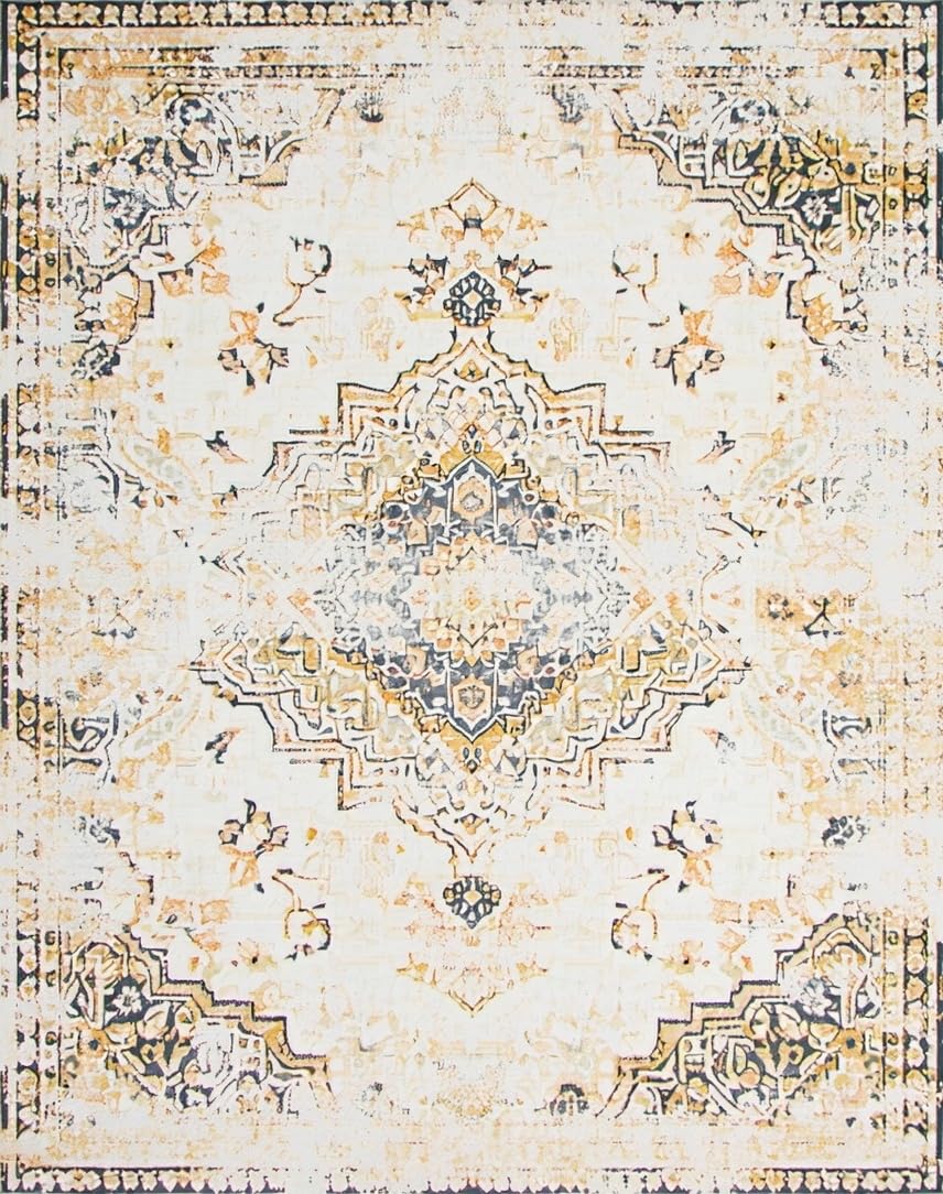 Ultra Soft Area Rug, Non Slip, Stain Resistant, Washable Area Rugs for Living Room, Bedroom, Margot Antique Neutral Ivory Area With Boho Inspired(Beige) Overview:
