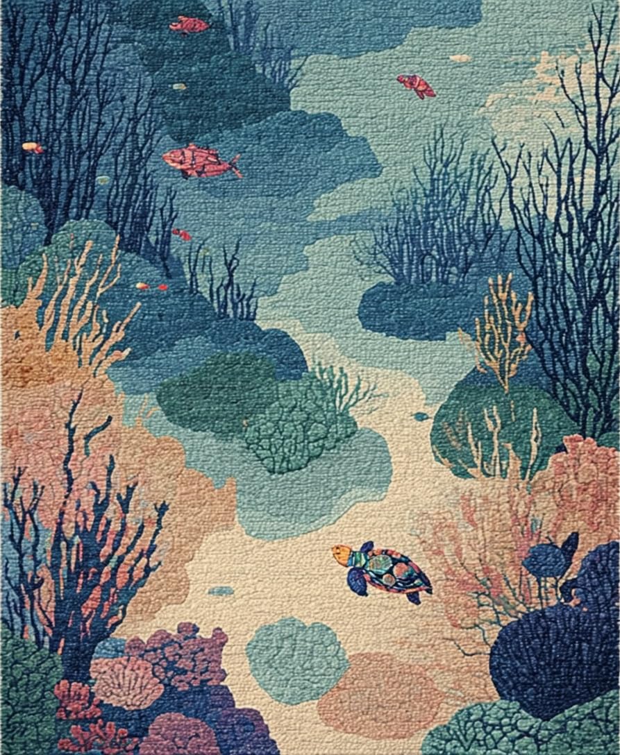 Marine Adventure With Graceful Turtles Amid Colorful Reef Design(Blue)