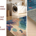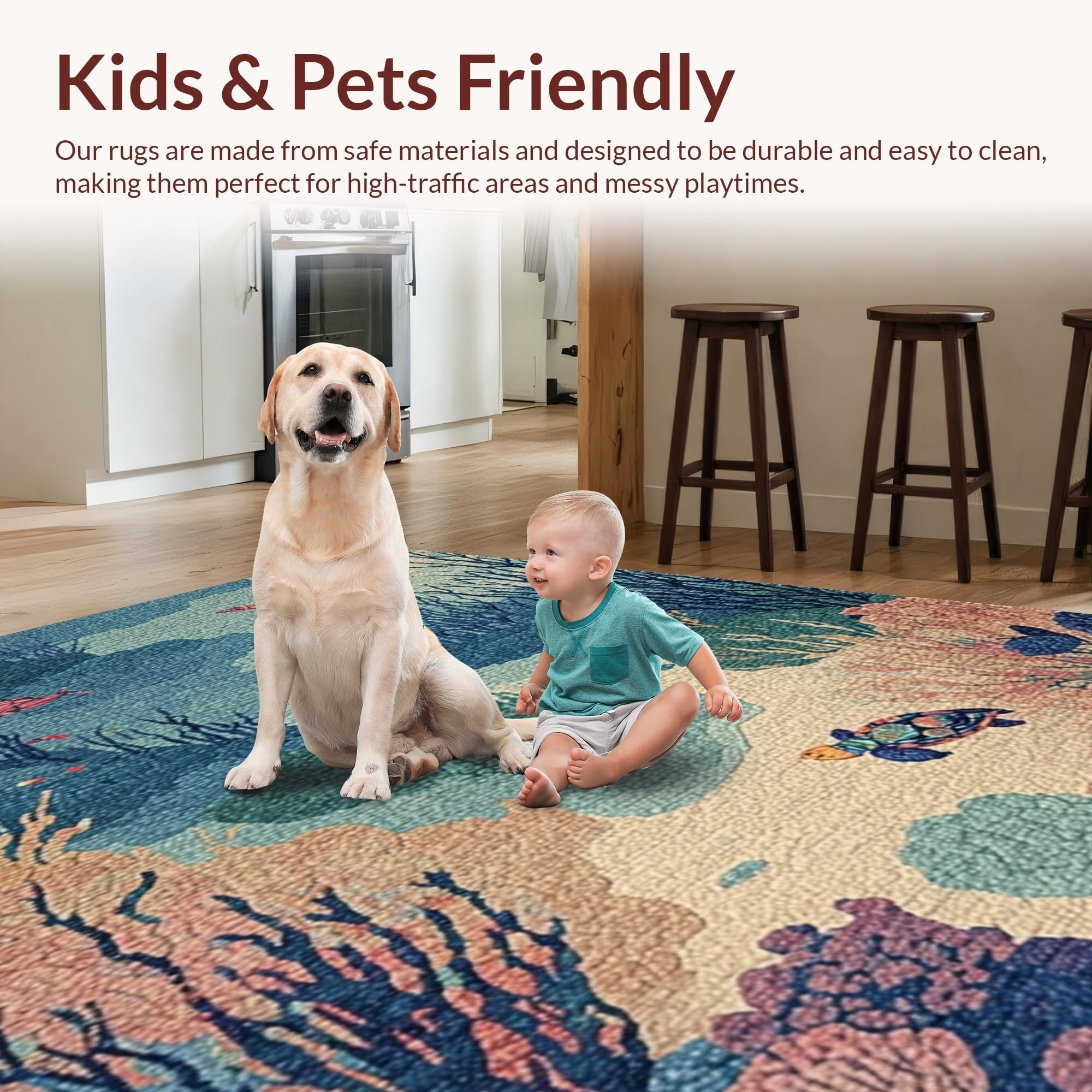 Ultra Soft Area Rug, Non Slip, Stain Resistant, Washable Area Rugs for Living Room, Bedroom, Marine Adventure Carpet With Graceful Turtles Amid Colorful Reef Design(Blue) Overview: