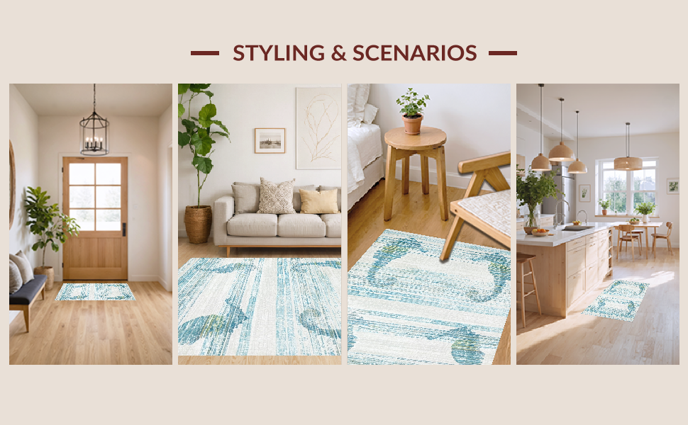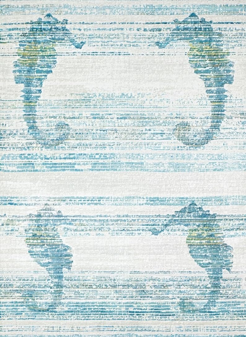 Ultra Soft Area Rug, Non Slip, Stain Resistant, Washable Area Rugs for Living Room, Bedroom, Marine Inspired Light Blue Rug with Stylized Seahorse and Fluid Coastal Patterns(Blue) Overview:
