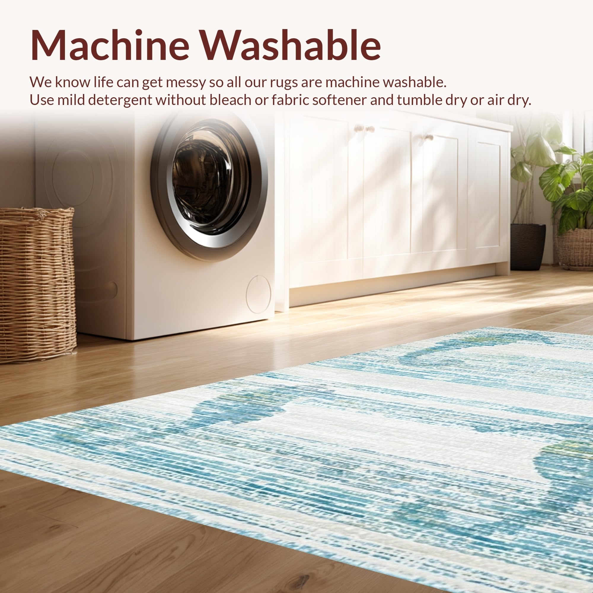 - Machine Washable: Our rugs can be easily thrown in the wash machine.