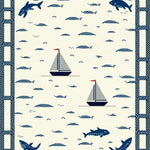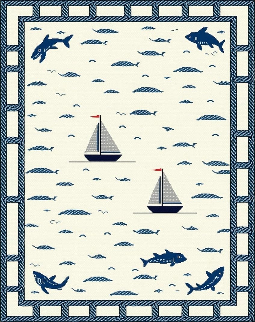 Marine Life Inspired Area Rug with Nautical Ropes and Sailboat Silhouettes(Beige)