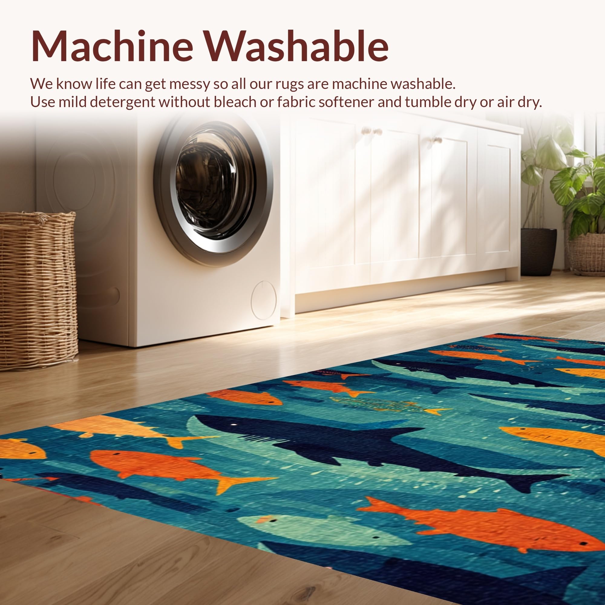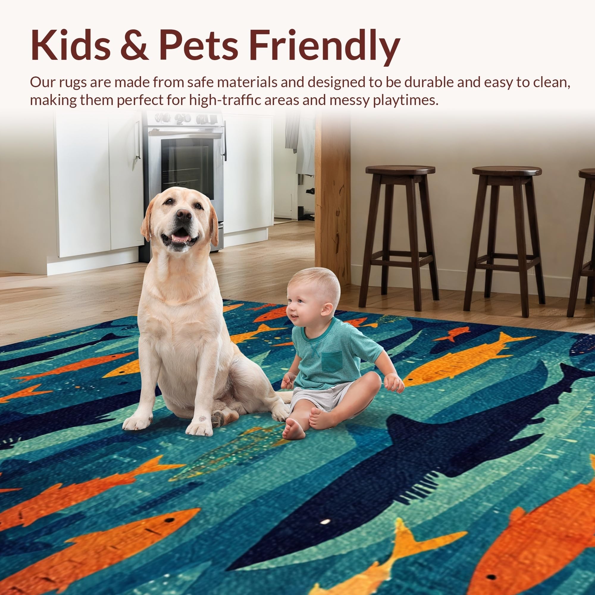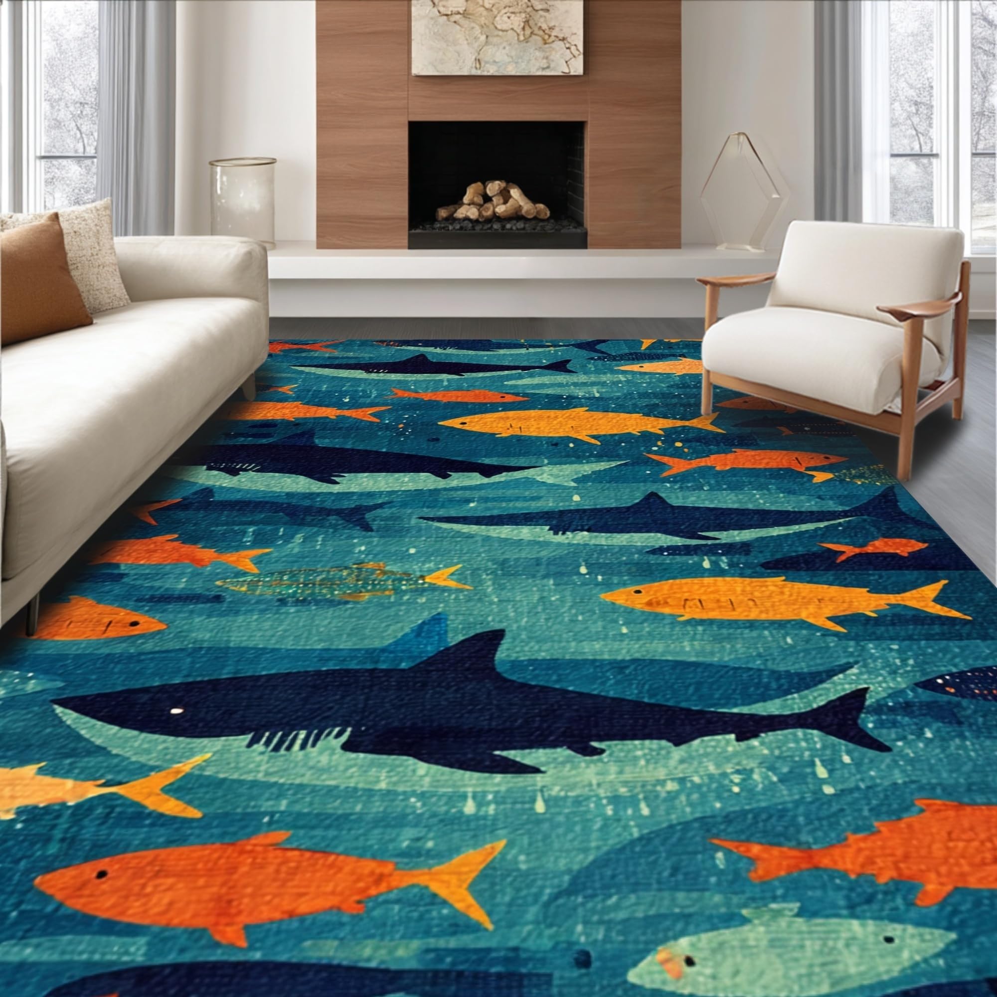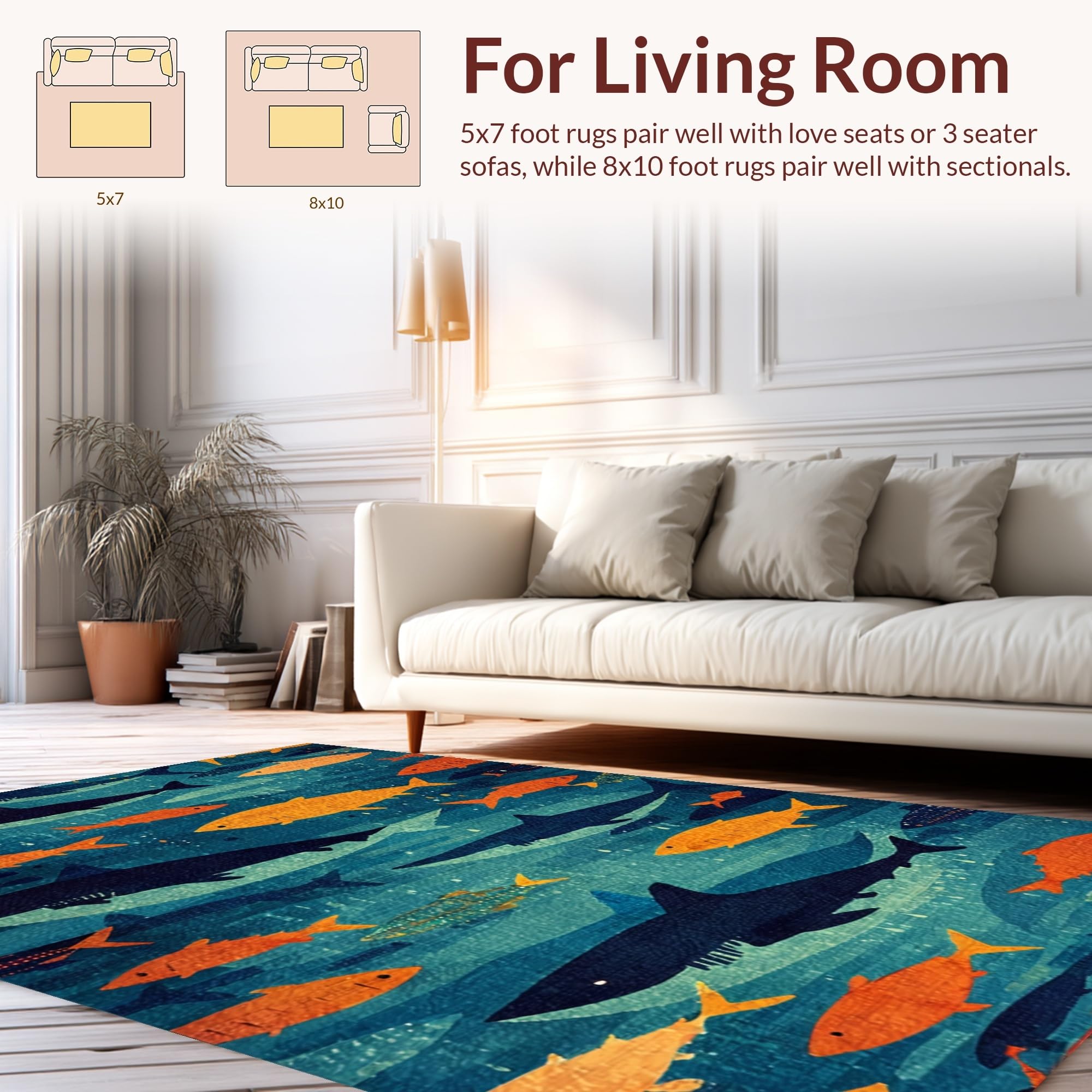 Ultra Soft Area Rug, Non Slip, Stain Resistant, Washable Area Rugs for Living Room, Bedroom, Marine Life Ocean Carpet Apex Predator Design(Blue) Overview: