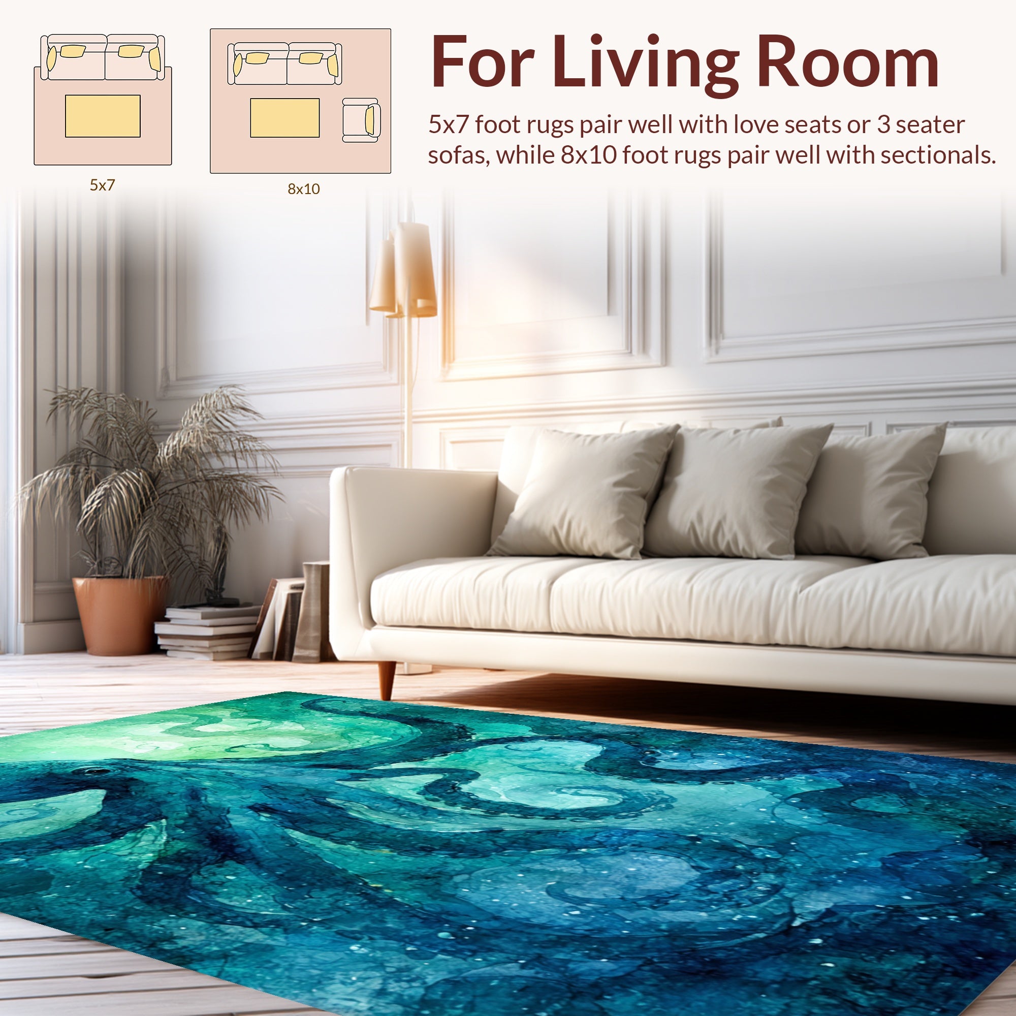 Ultra Soft Area Rug, Non Slip, Stain Resistant, Washable Area Rugs for Living Room, Bedroom, Marine Life Tentacle Watercolor Ocean Creature Non Slip Mat(Blue) Overview: