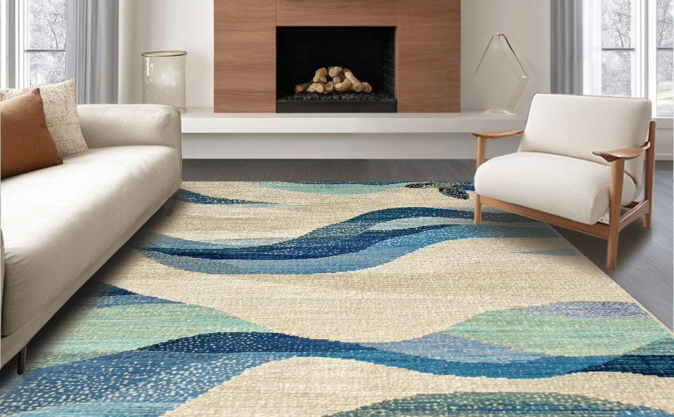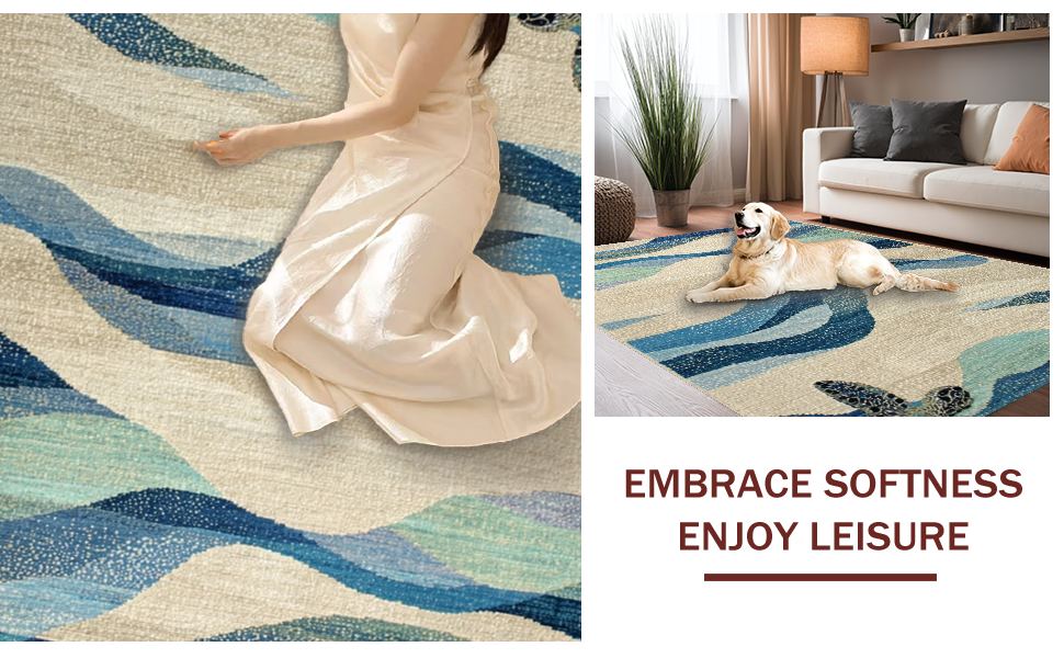 Ultra Soft Area Rug, Non Slip, Stain Resistant, Washable Area Rugs for Living Room, Bedroom, Marine Life Treasure Digital Print Rug With Nautical Charm And Seashell(Beige) Overview: