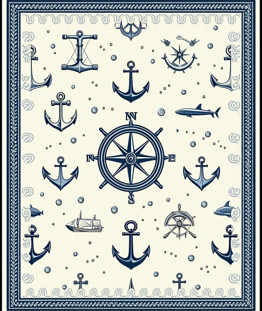 Maritime Voyage Decorative with Anchor Design for Indoor Spaces(Blue)
