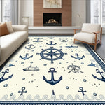 Flatwoven High Traffic Area Rug, Maritime Voyage Decorative with Anchor Design for Indoor Spaces, Non Slip, Stain Resistant, Washable Area Rugs for Living Room, Bedroom (Blue) Overview:
