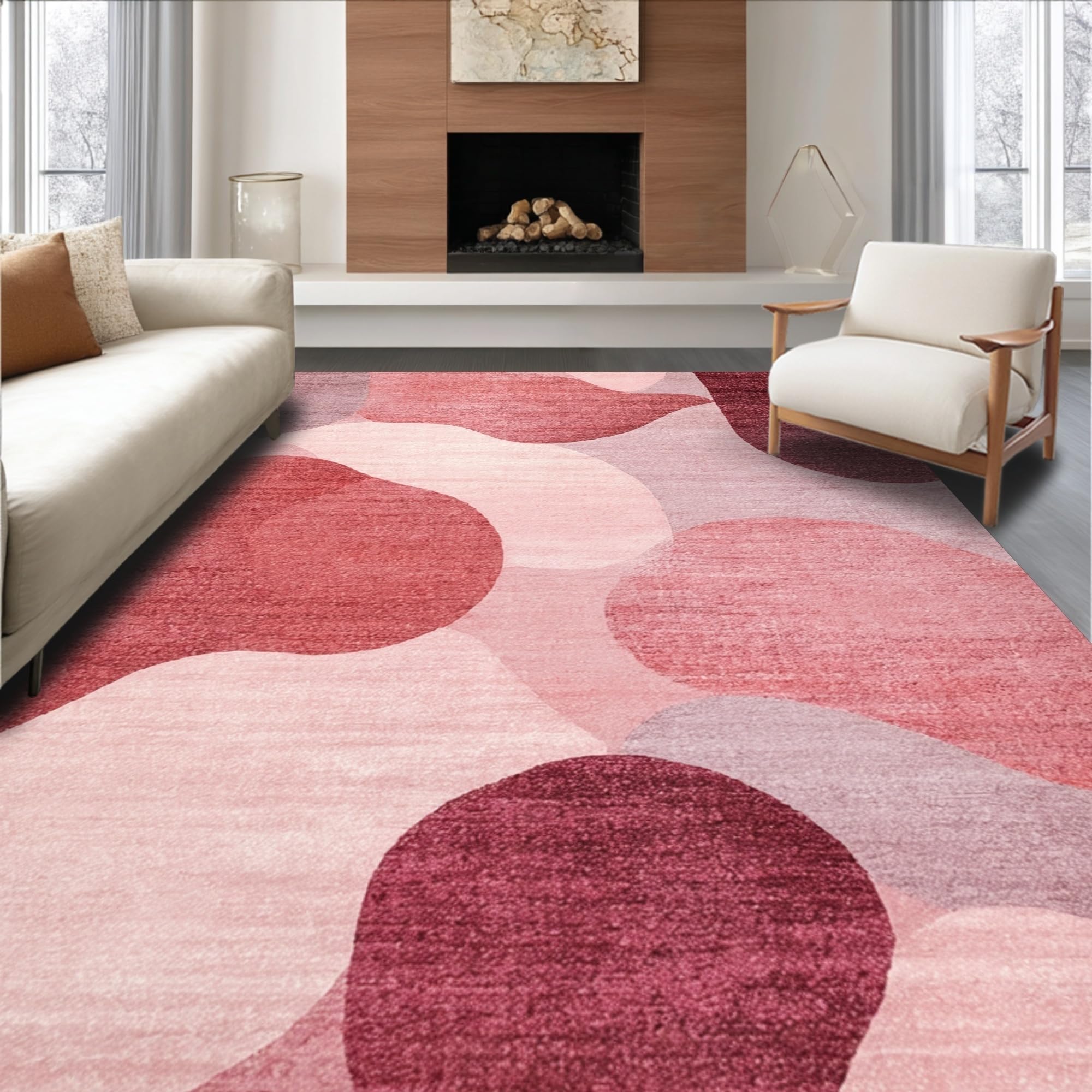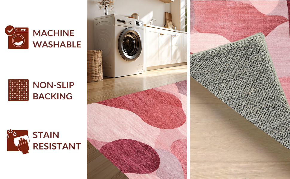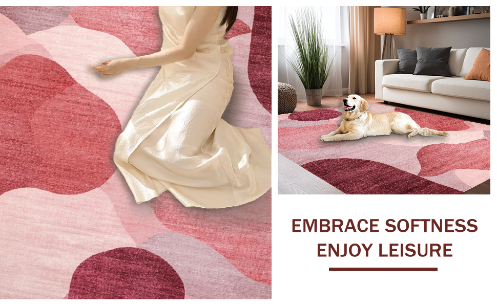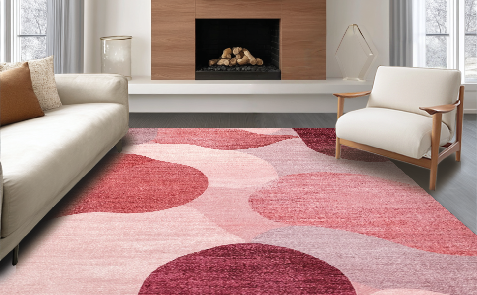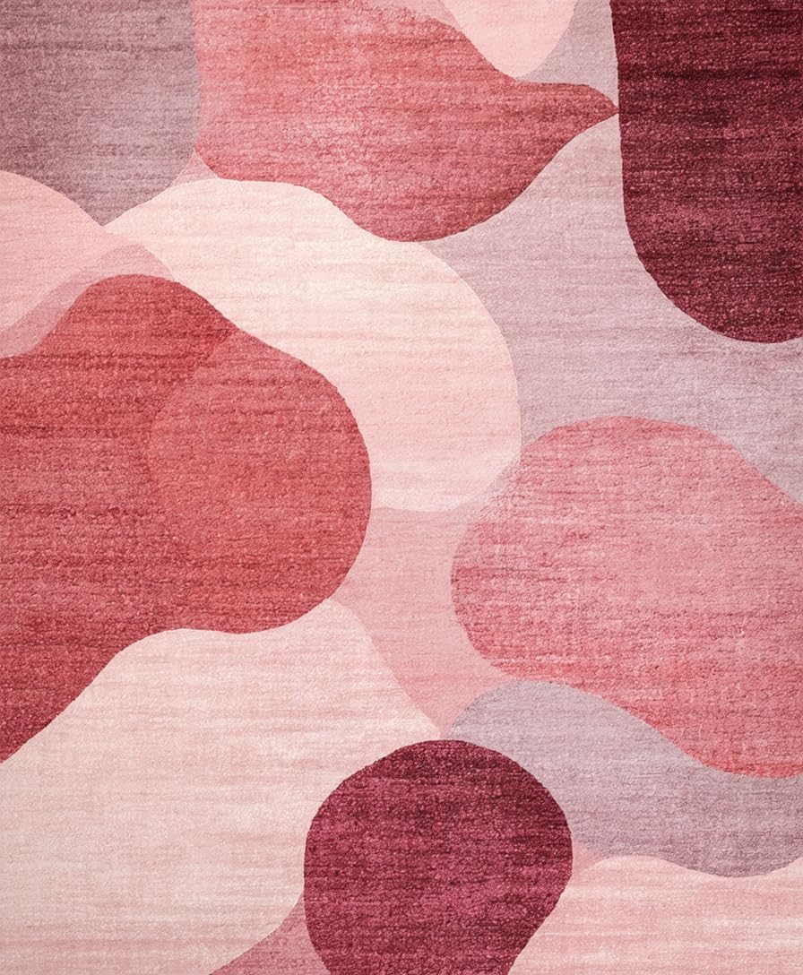 Ultra Soft Area Rug, Non Slip, Stain Resistant, Washable Area Rugs for Living Room, Bedroom, Mauve Harmony Modern Rug with Dreamy Blush Gradient and Soft Rose Motifs(Red) Overview:
