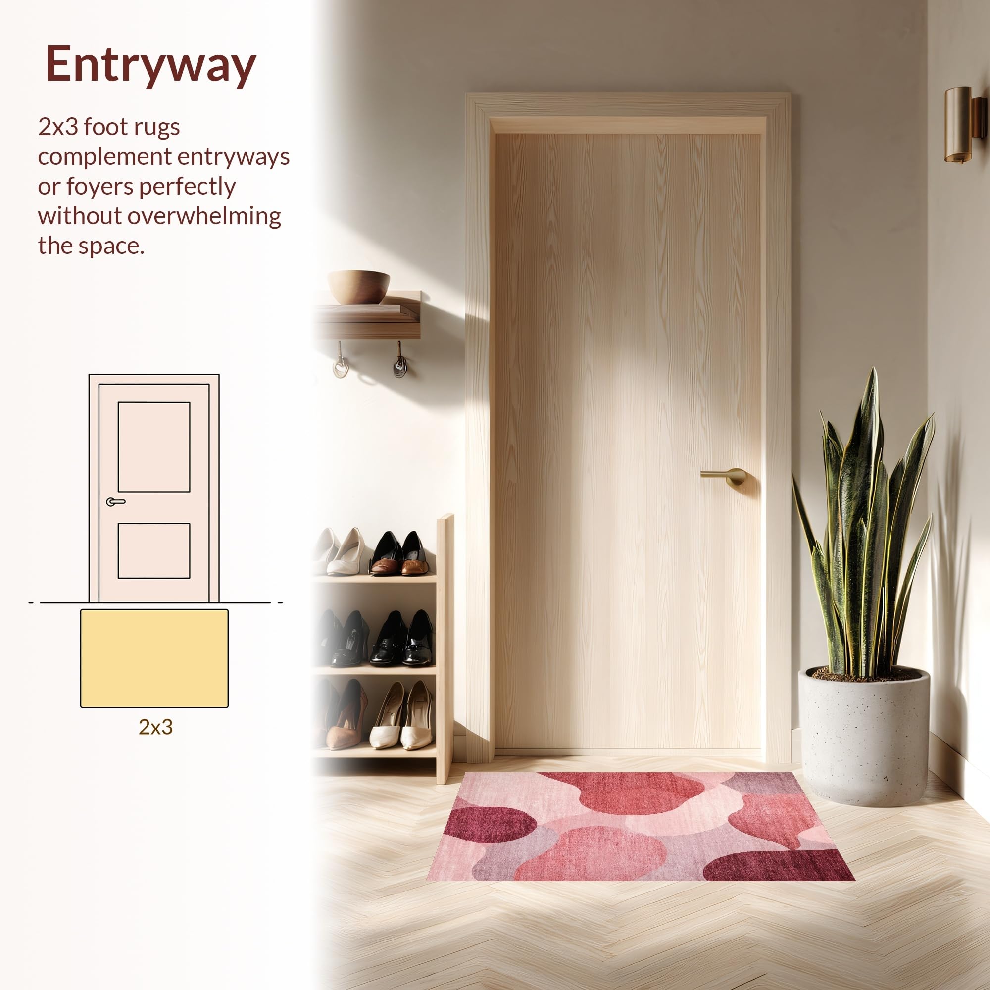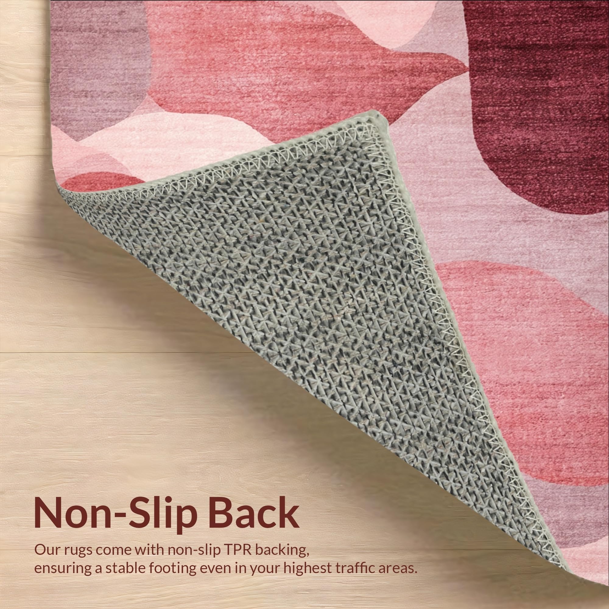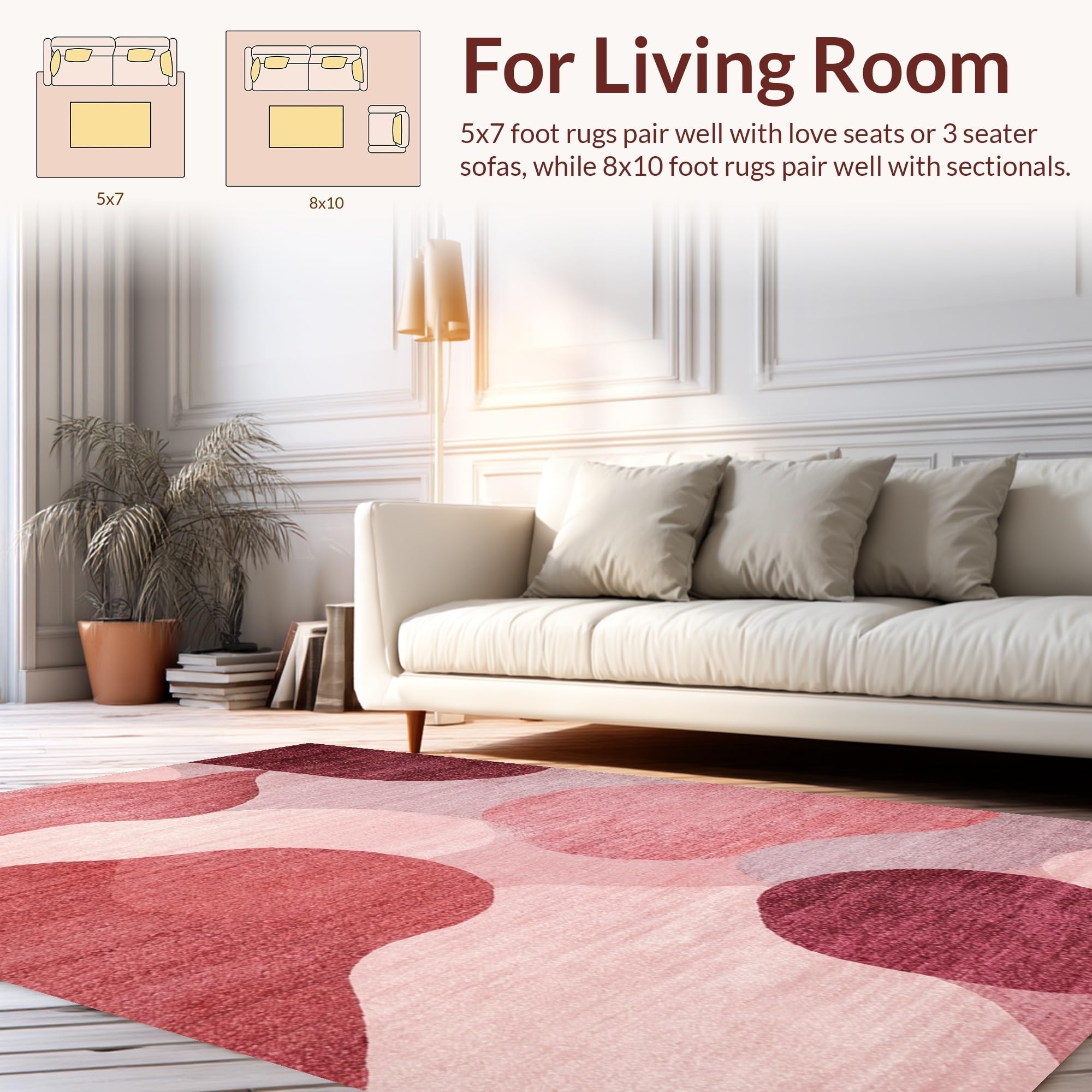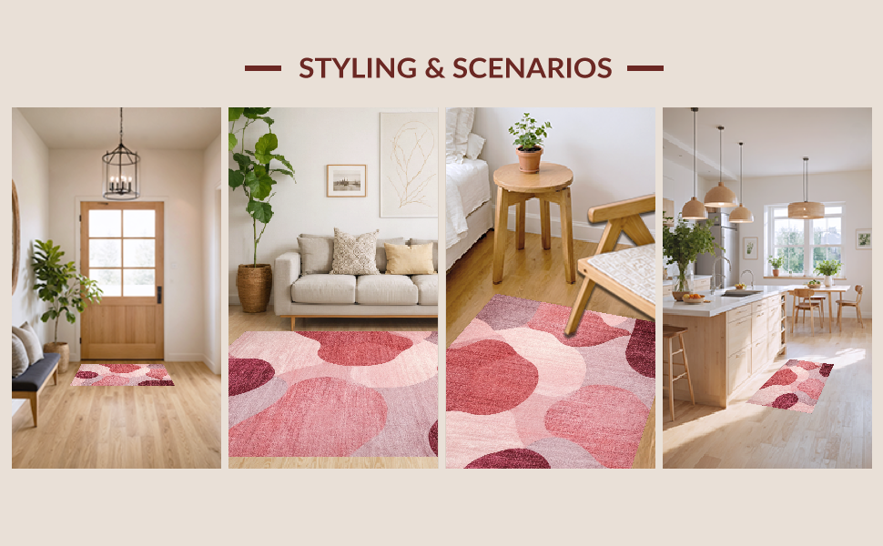 Ultra Soft Area Rug, Non Slip, Stain Resistant, Washable Area Rugs for Living Room, Bedroom, Mauve Harmony Modern Rug with Dreamy Blush Gradient and Soft Rose Motifs(Red) Overview: