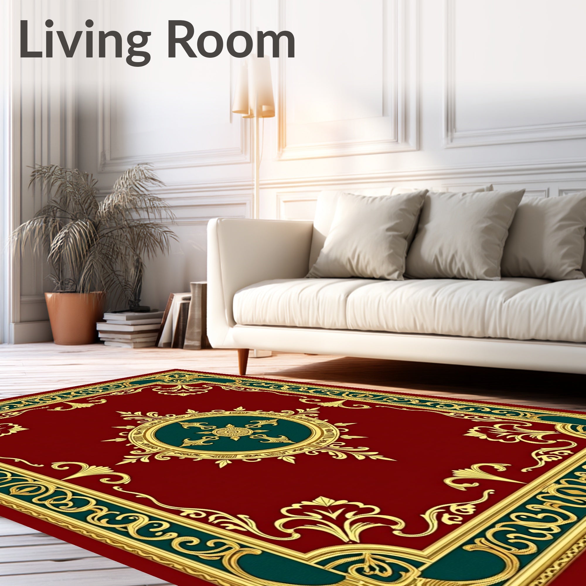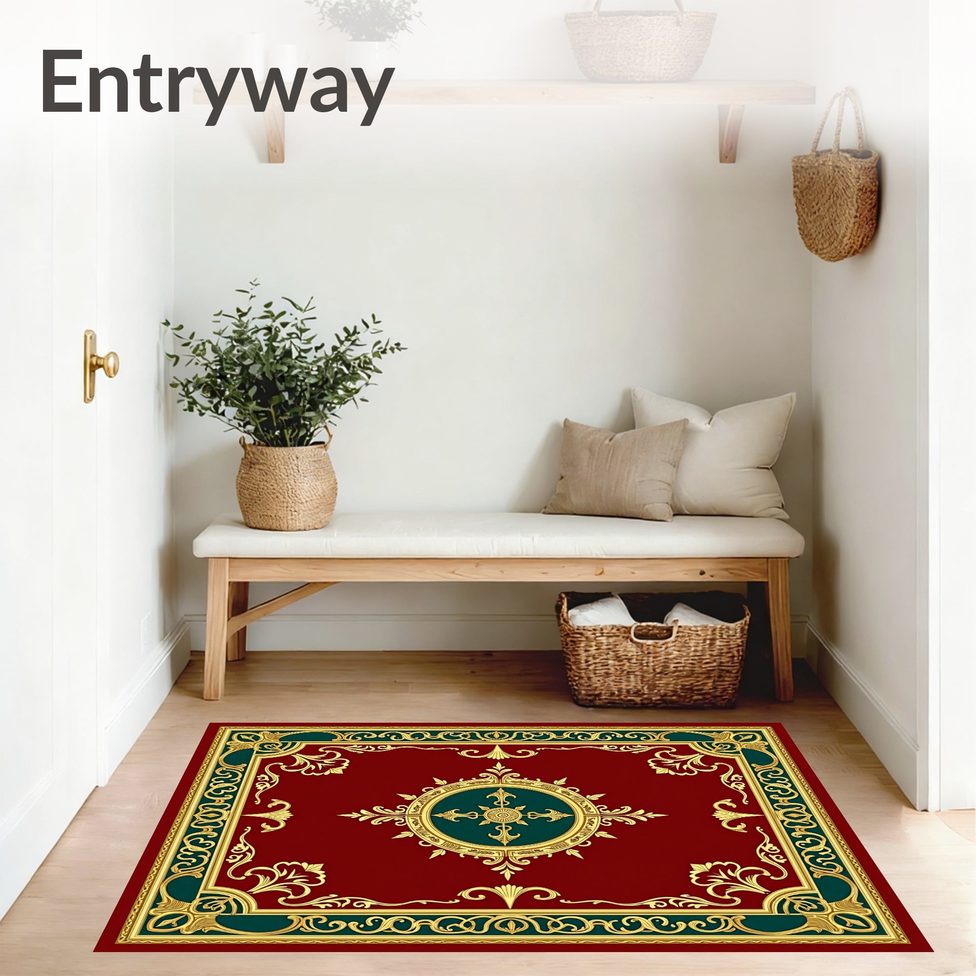 Ultra Soft Area Rug, Non Slip, Stain Resistant, Washable Area Rugs for Living Room, Bedroom, Medallion Flourish with Baroque Scrollwork(Red) Overview: